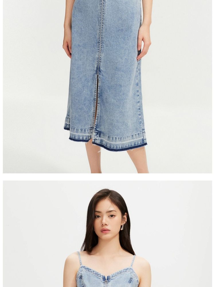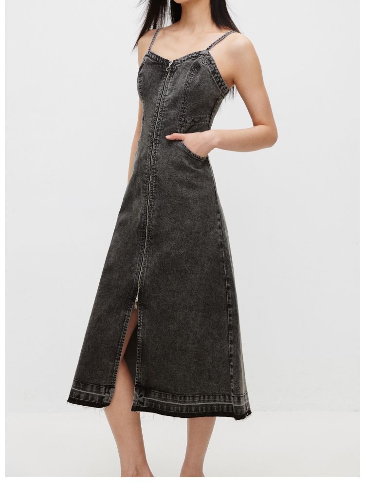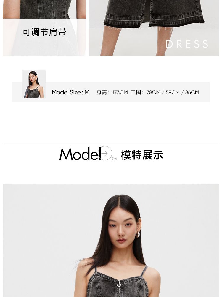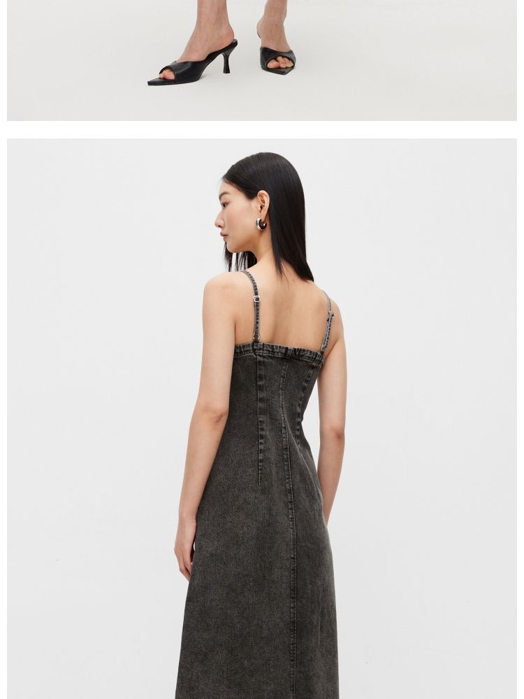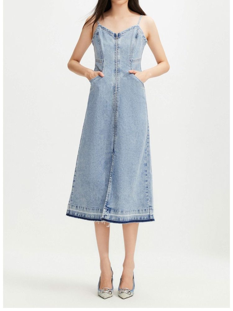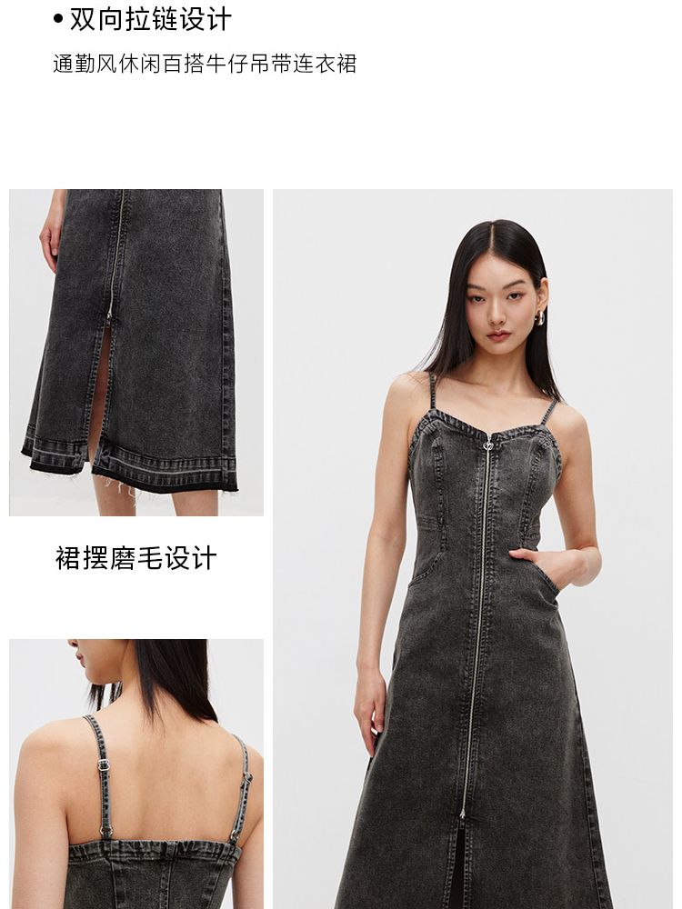 商品名称:【休闲百搭】 夏季通勤风磨毛牛仔吊带连衣裙女 509914