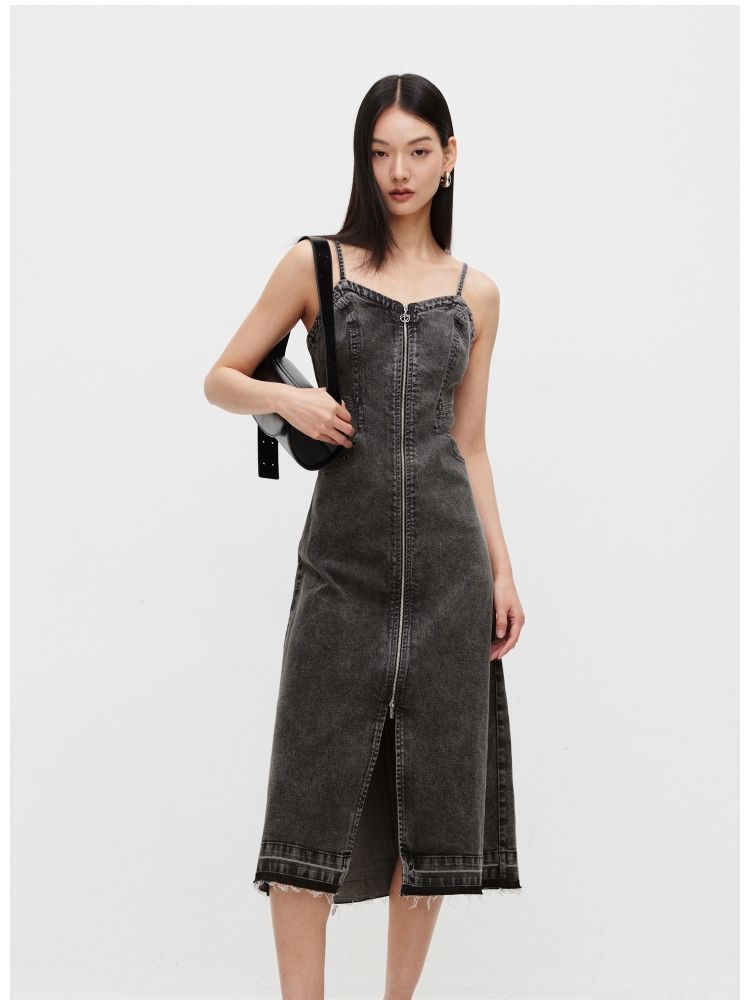 【休闲百搭】 夏季通勤风磨毛牛仔吊带连衣裙女 509914