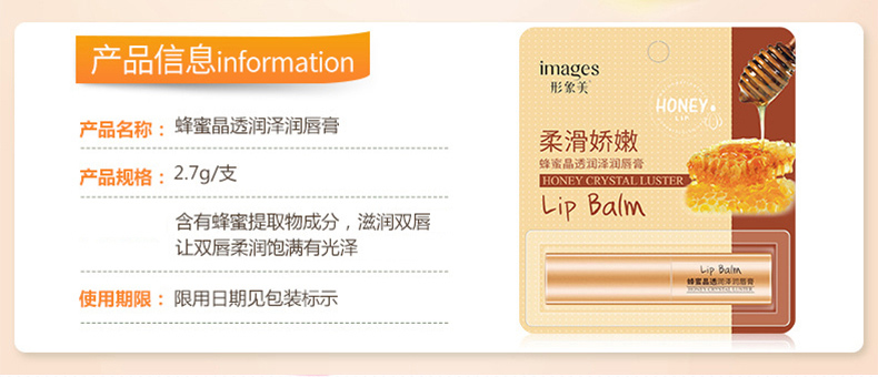 商品名称:形象美 蜂蜜晶透润泽润唇膏 2.7g*2支