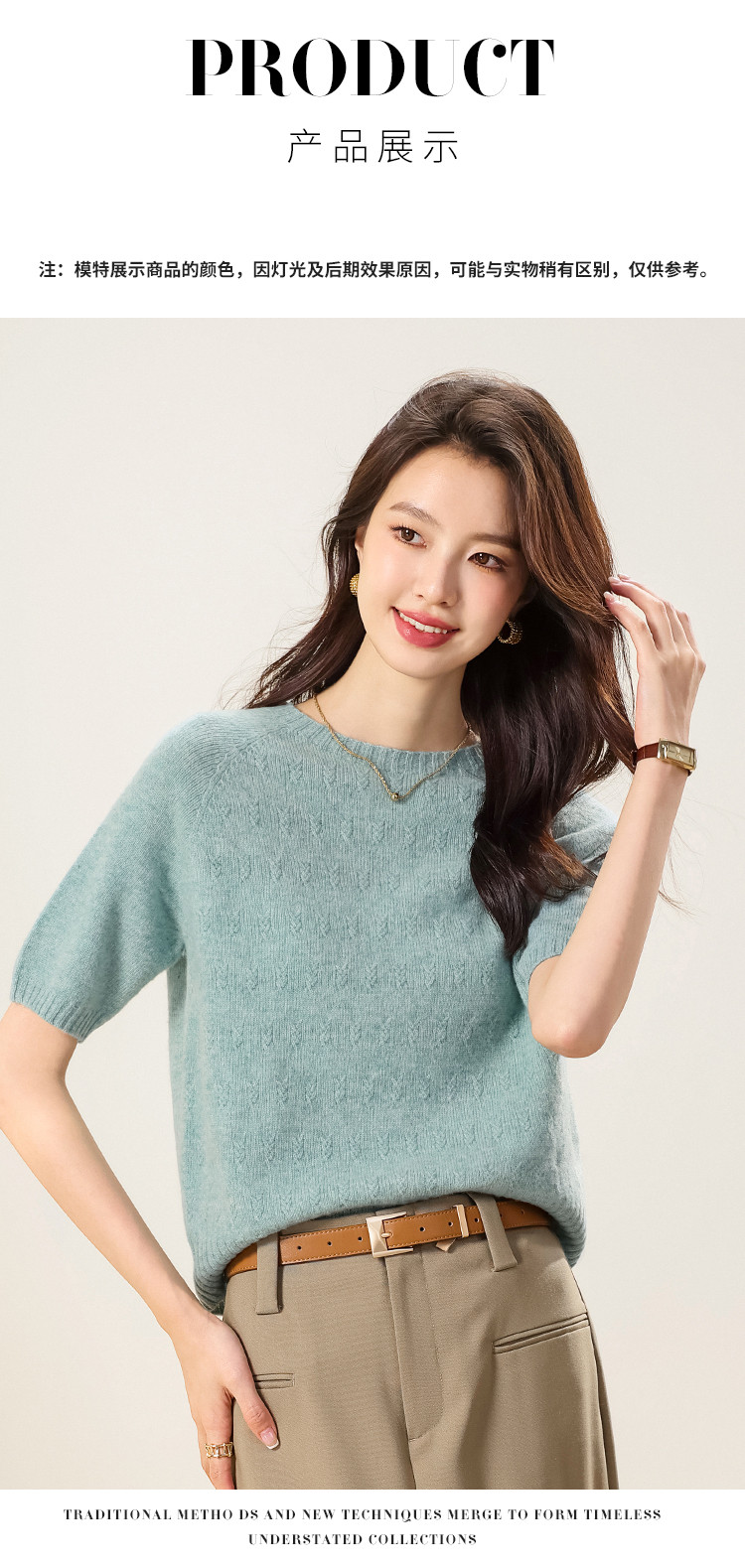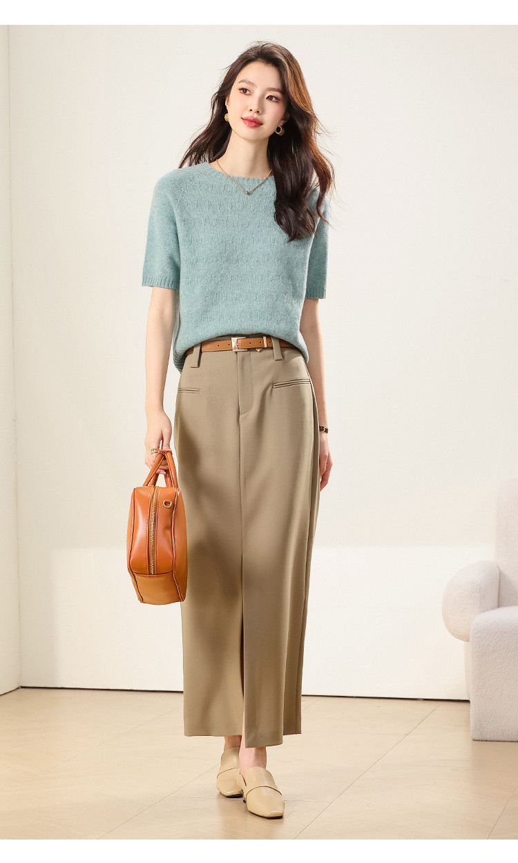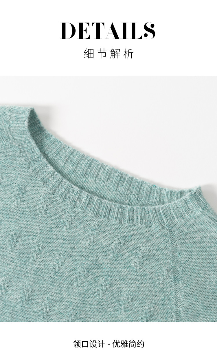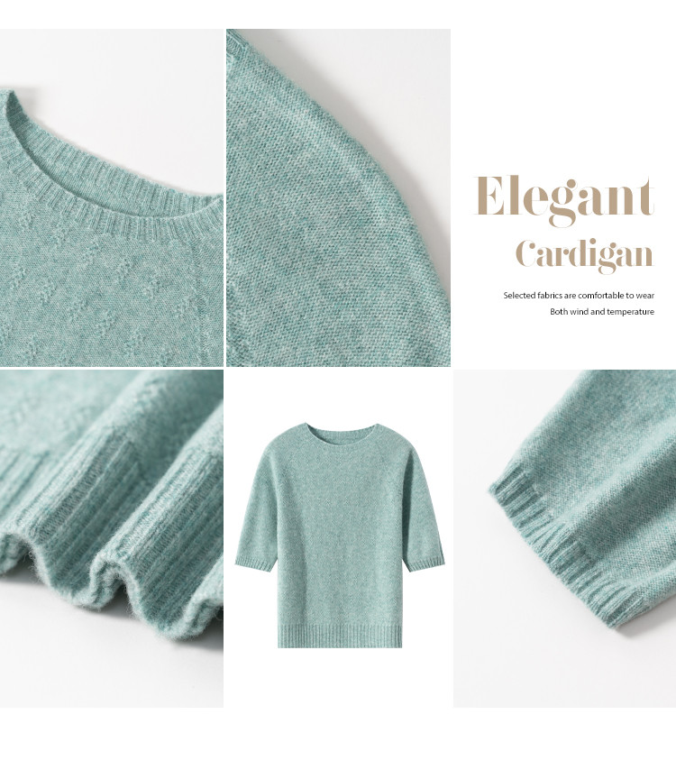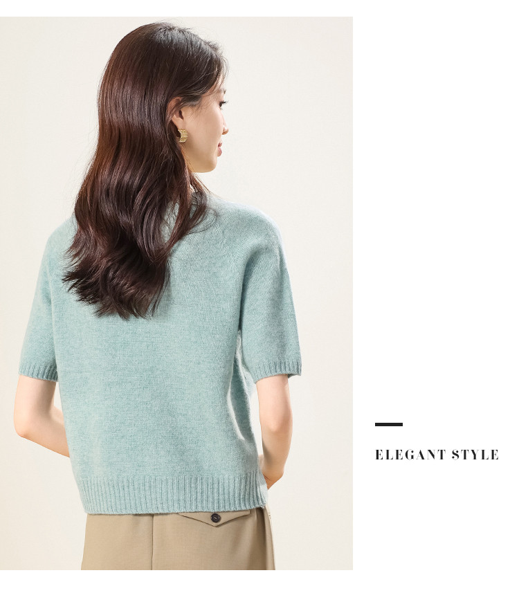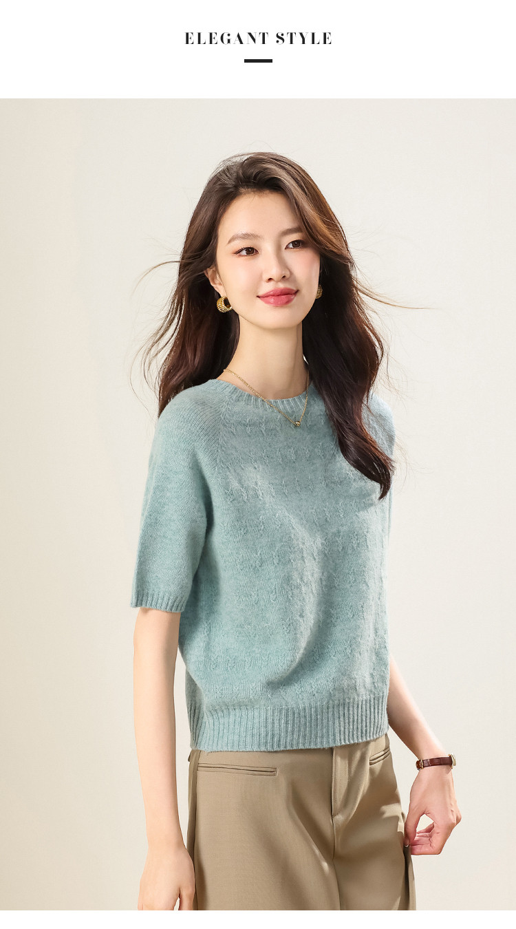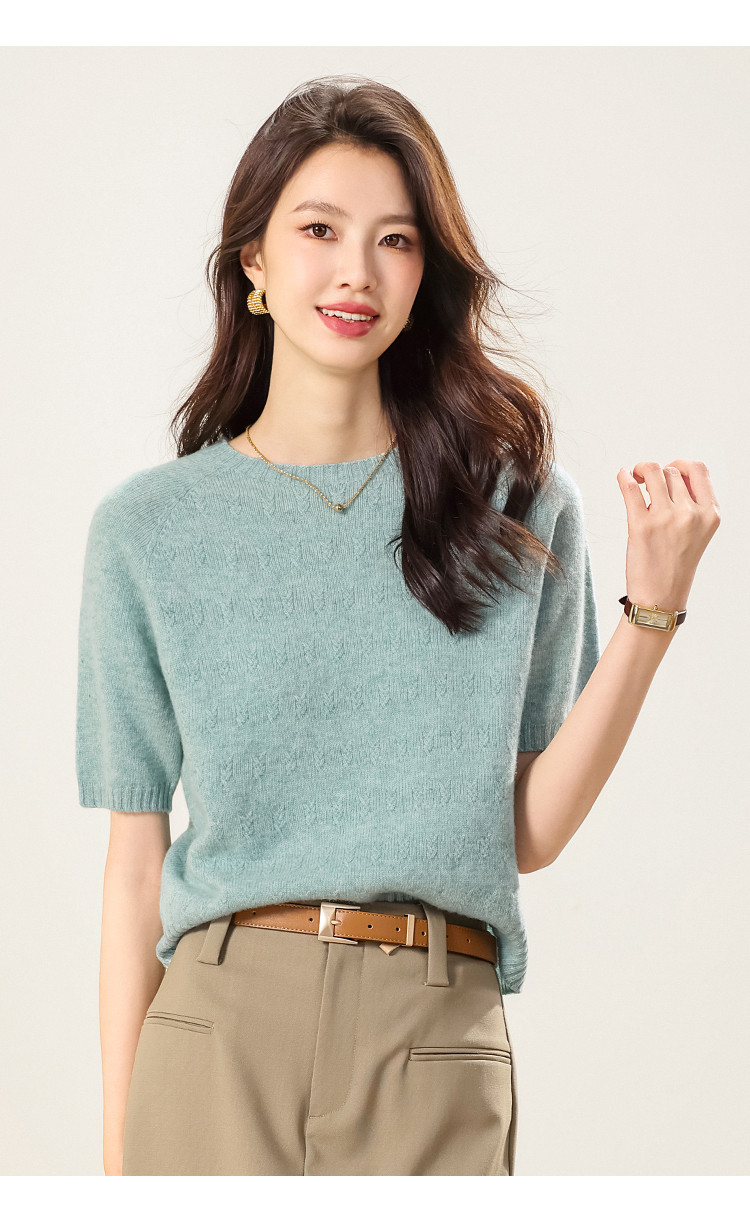 商品名称:【100%绵羊毛】圆领钩花针织打底羊毛短袖T恤纯色羊毛衫女 595475