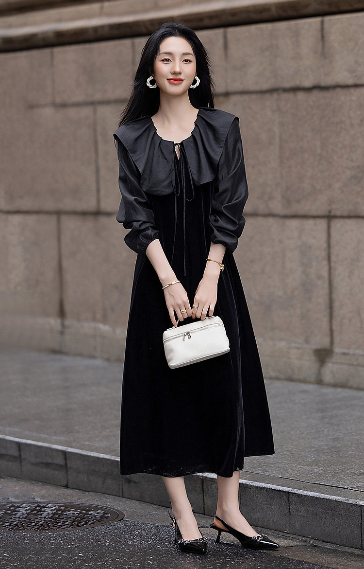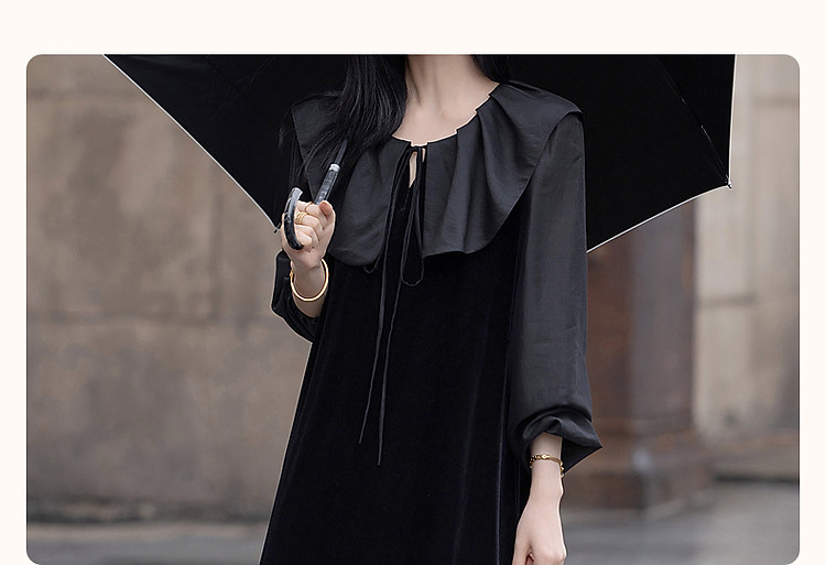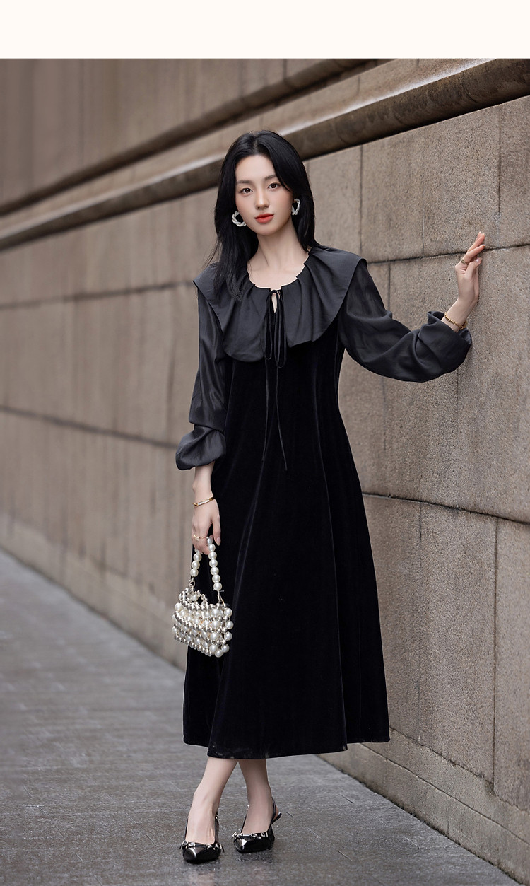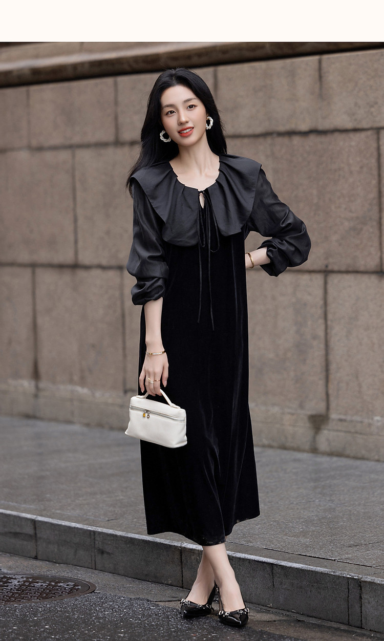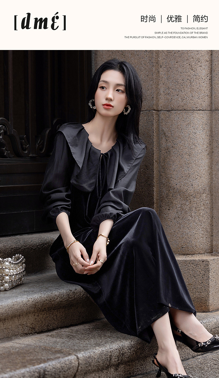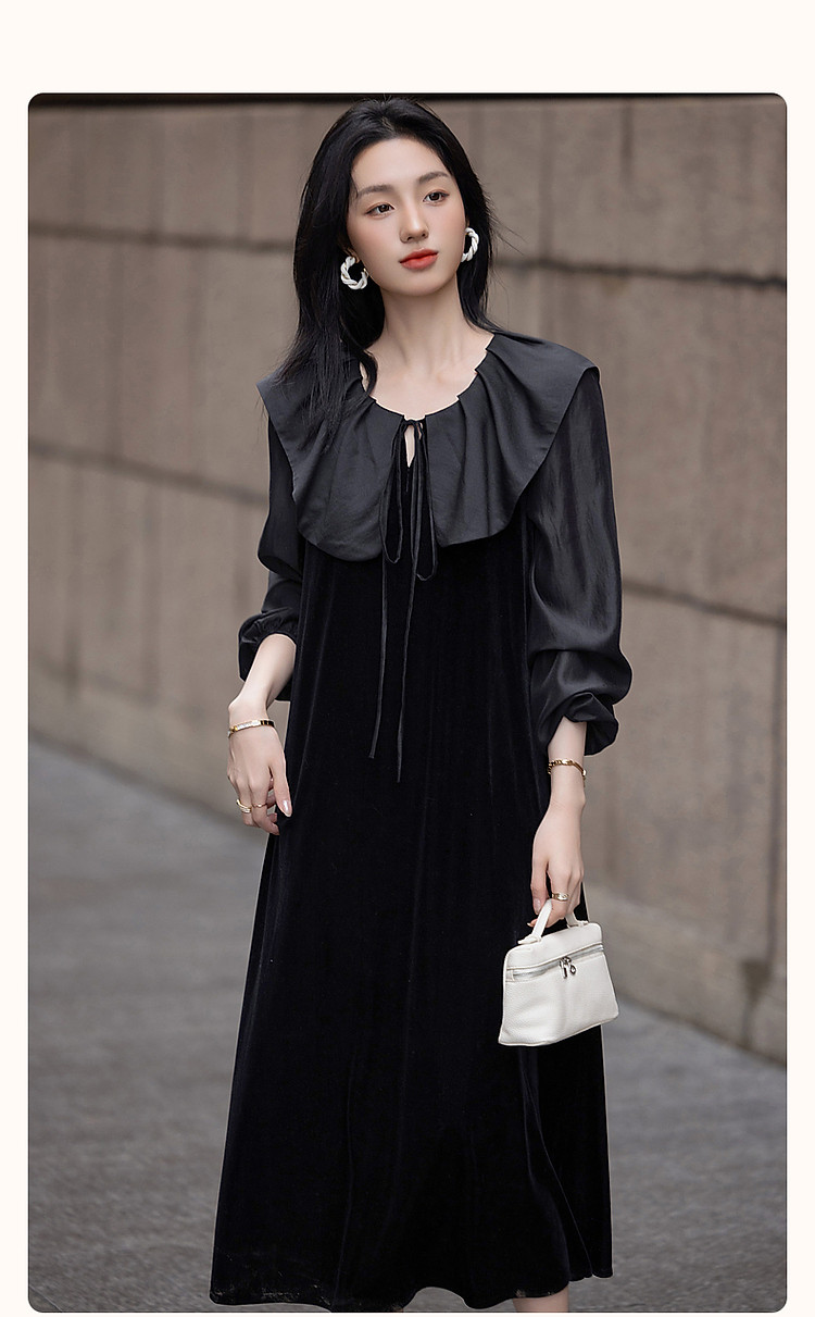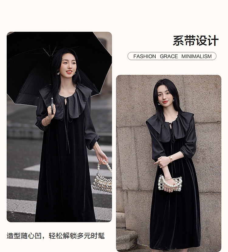商品名称:【姐系魅力】春秋法式名媛风绒感气质茶歇裙优雅系带藏肉女连衣裙 430081