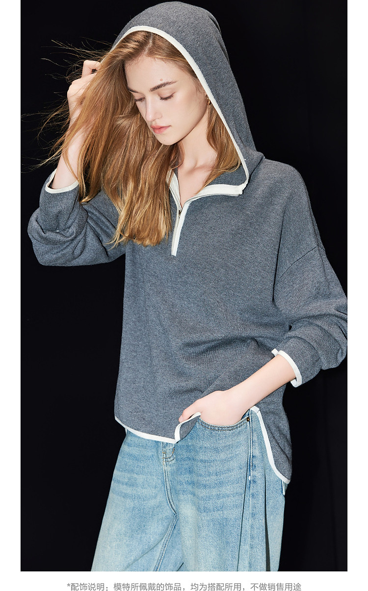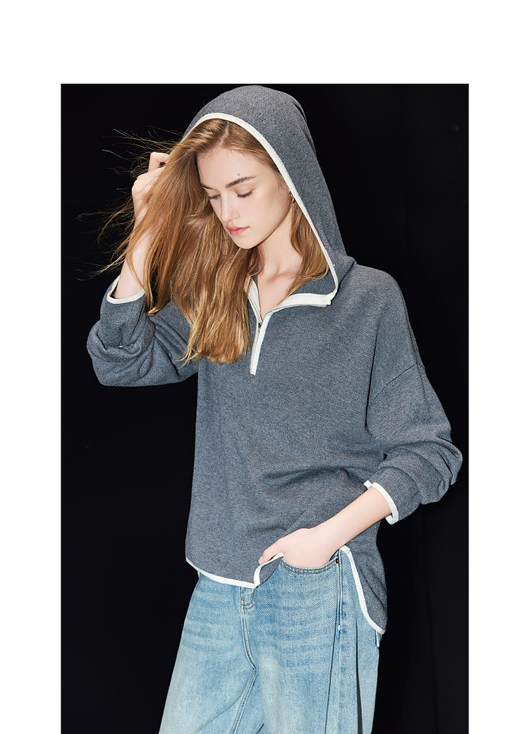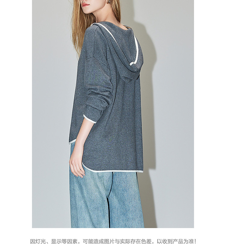 商品名称:【向云端】春秋简约风连帽通勤撞色拉链线衫藏肉针织衫女上衣 956865