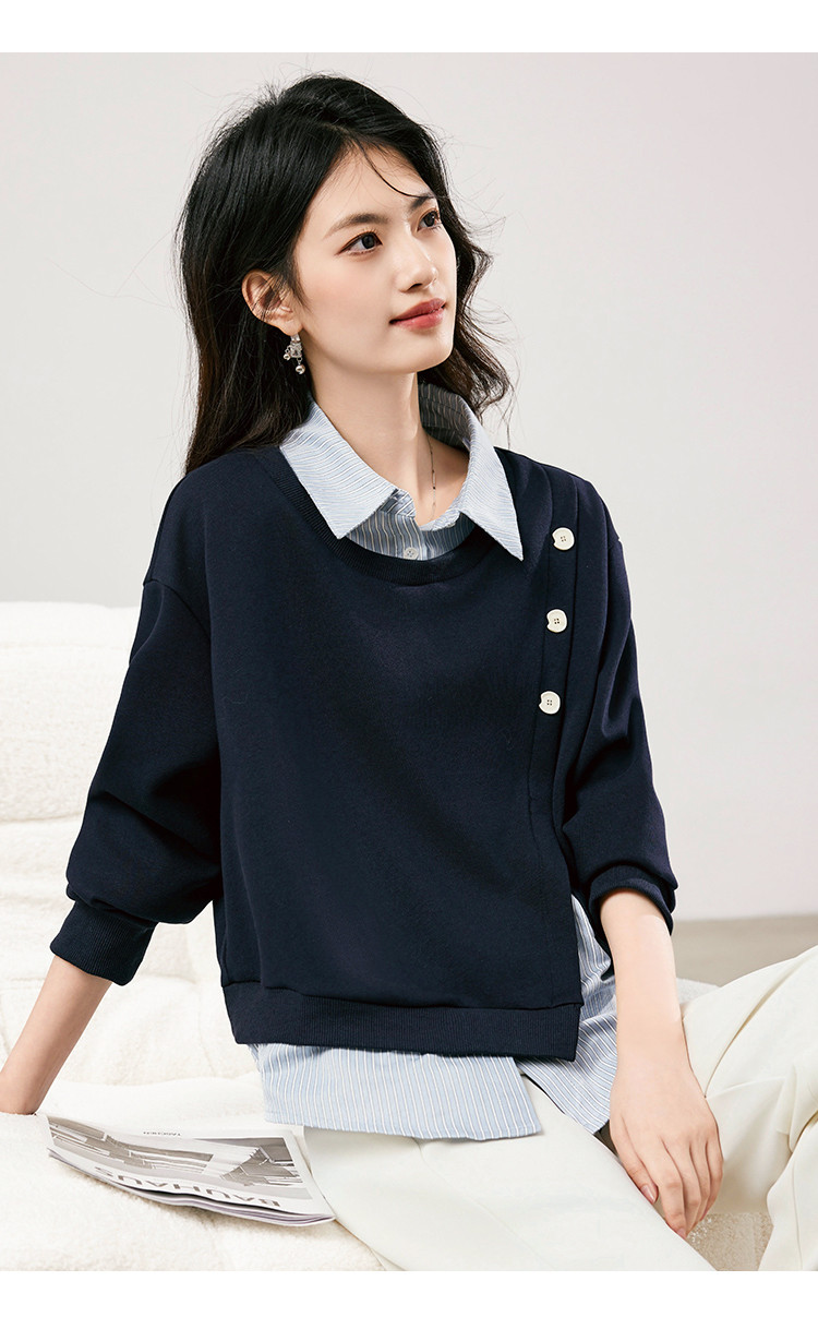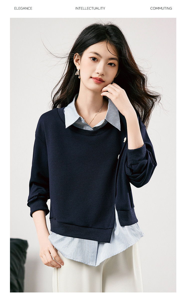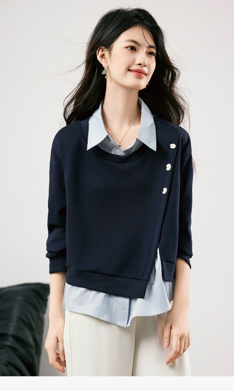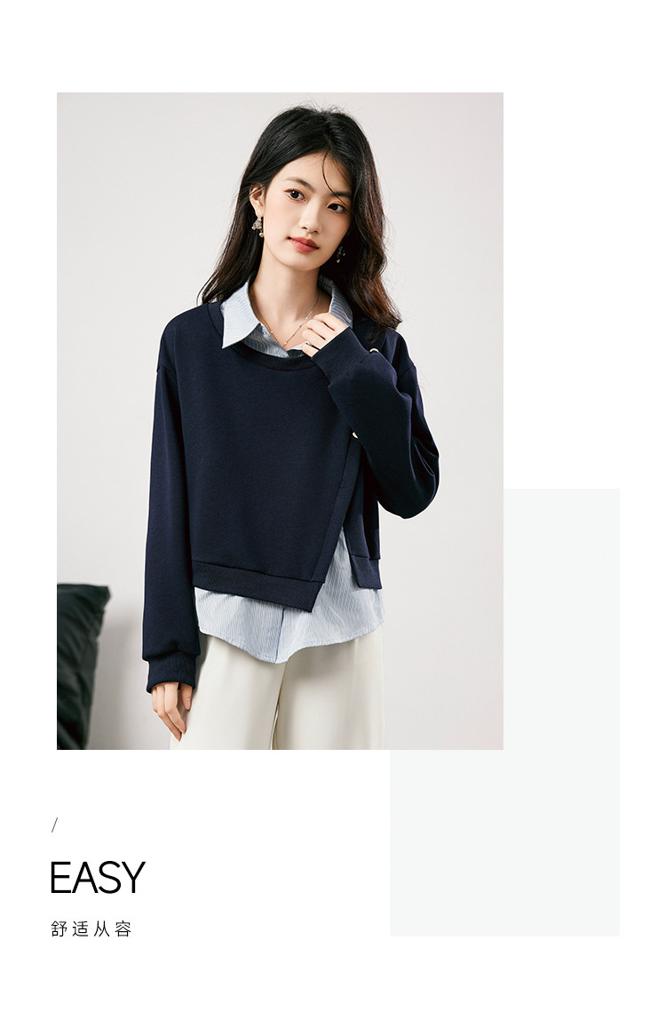 商品名称:拼接假两件休闲卫衣女25春季新款时尚气质百搭显瘦春秋长袖上衣 125400