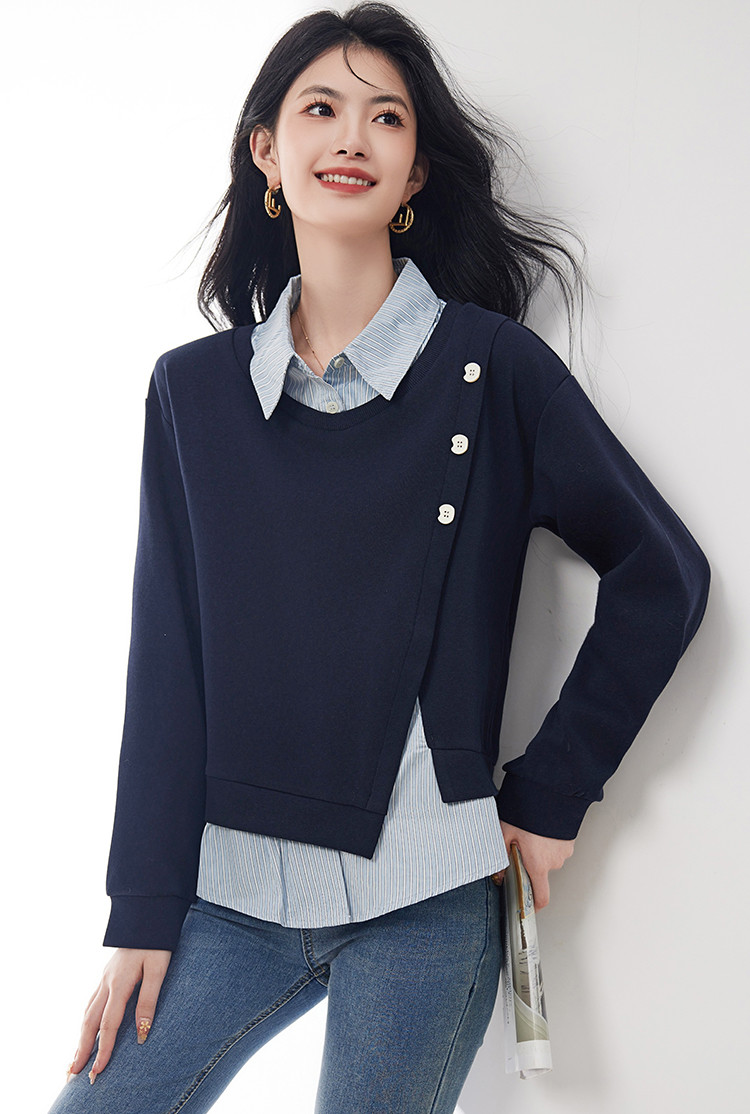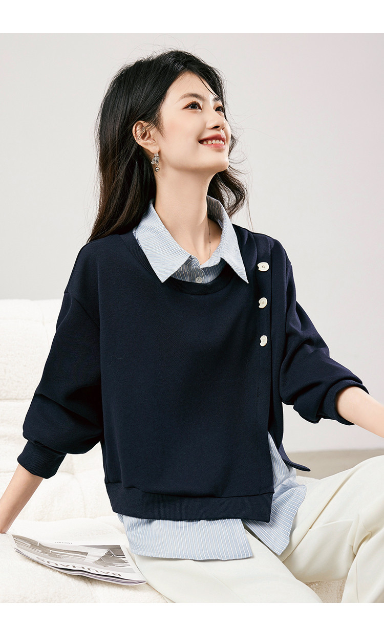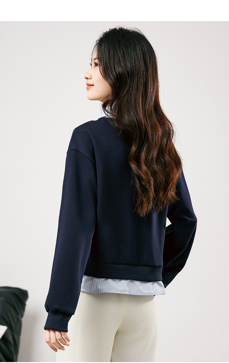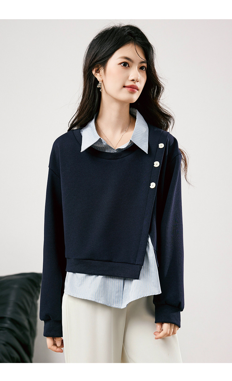 商品名称:拼接假两件休闲卫衣女25春季新款时尚气质百搭显瘦春秋长袖上衣 125400