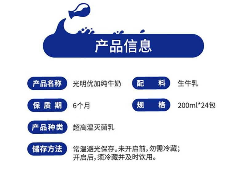 商品名称:光明 优加纯牛奶 200ml*24盒