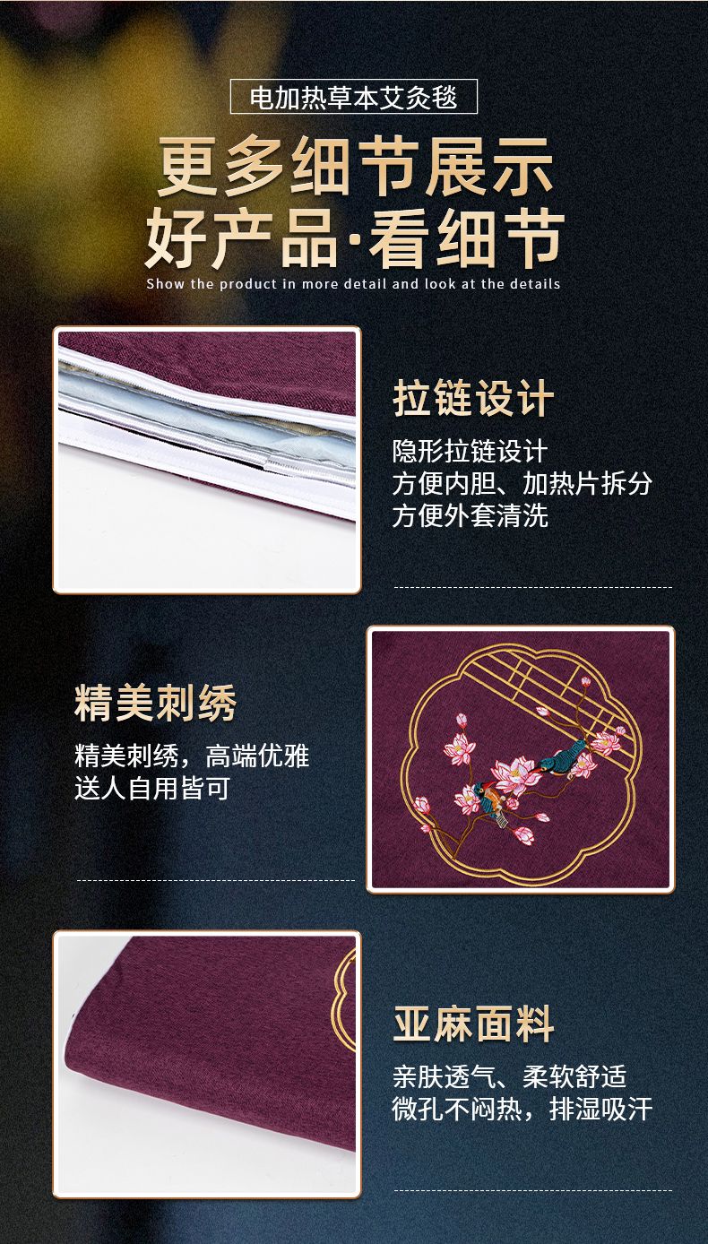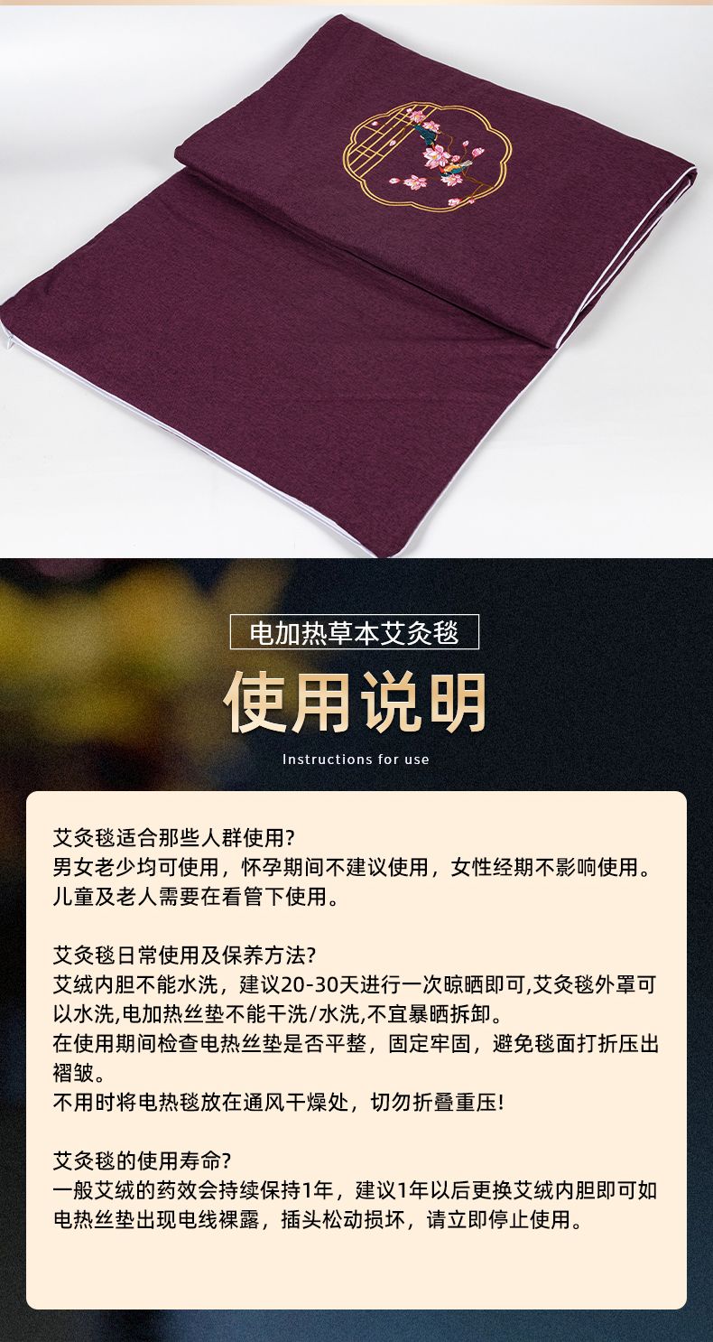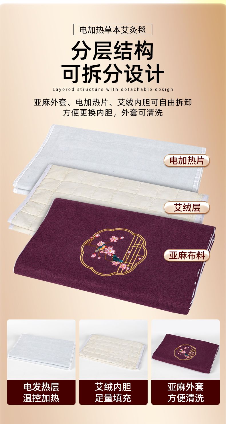 艾灸毯电加热艾灸垫 艾草床垫热敷包 艾绒电热毯保暖褥子发热坐垫