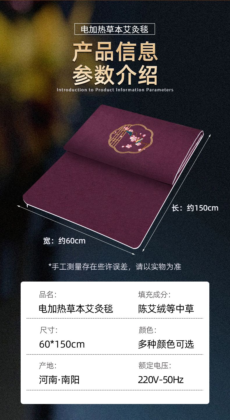 商品名称:艾灸毯电加热艾灸垫 艾草床垫热敷包 艾绒电热毯保暖褥子发热坐垫