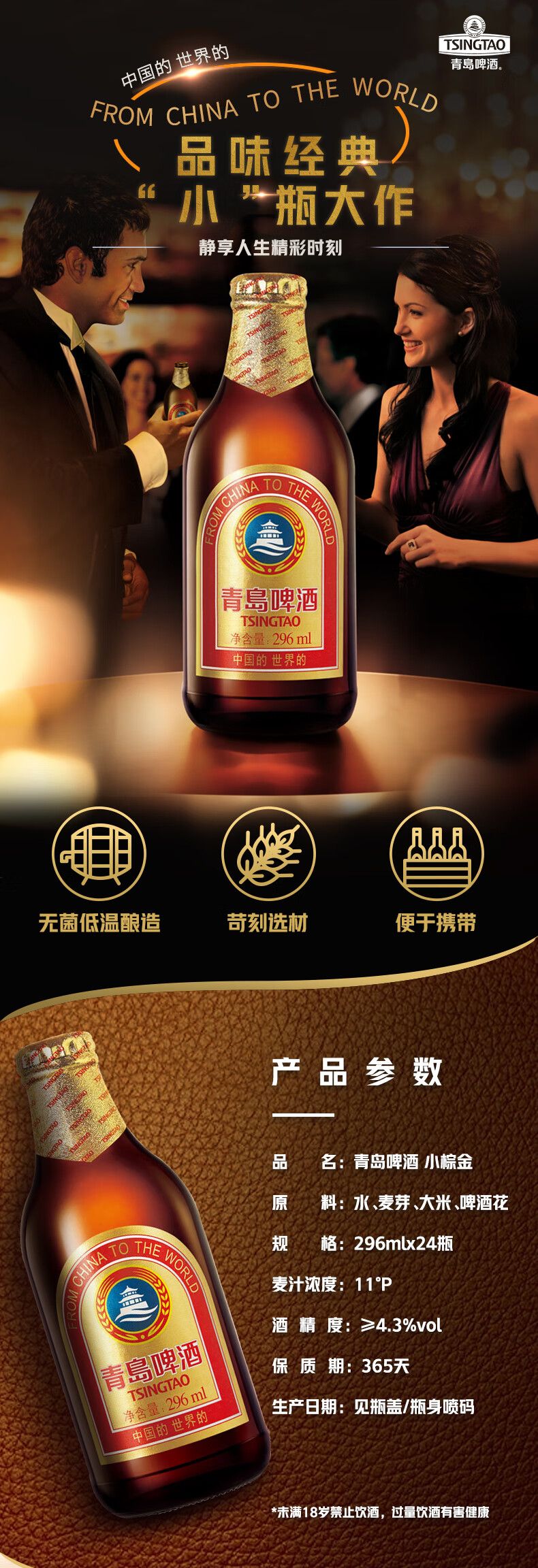 商品名称:青岛啤酒11度296ml*24棕金箱啤