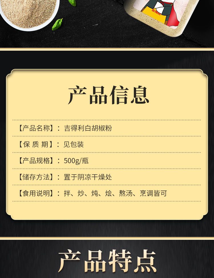 商品名称:吉得利 白胡椒粉500g(制品)