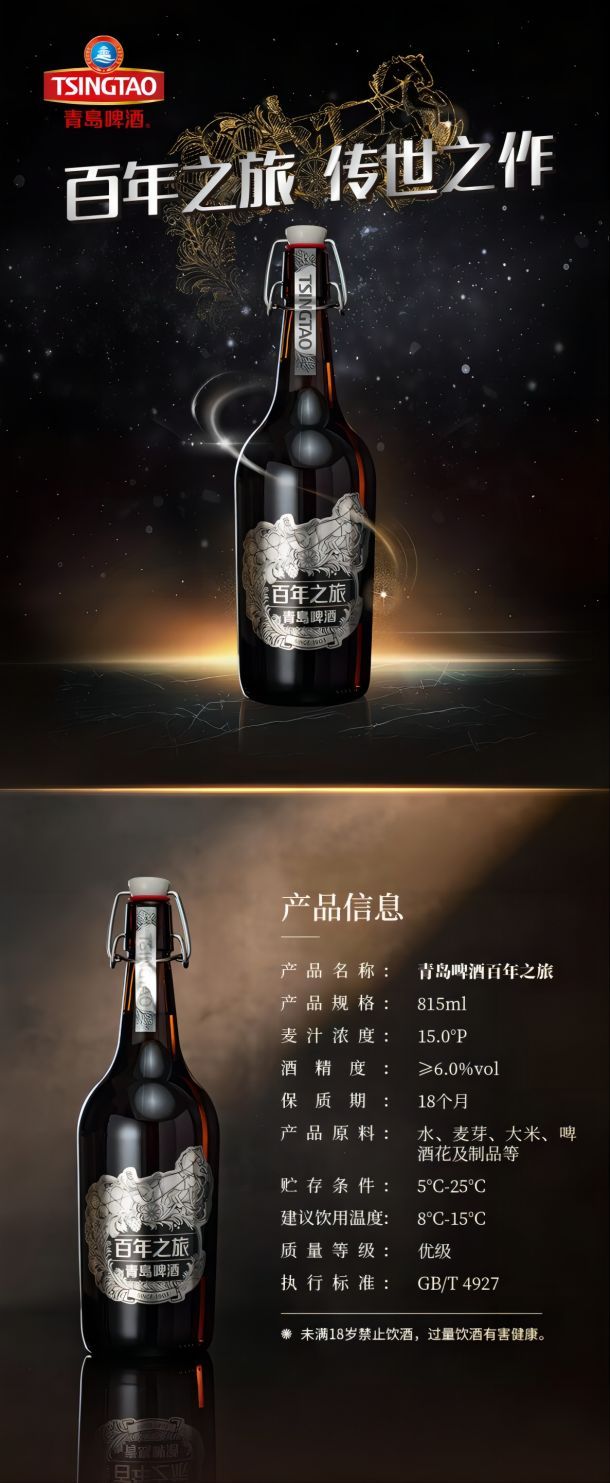 商品名称:青岛啤酒(Tsingtao)百年之旅大师酒 15度815ml*1瓶 礼盒装