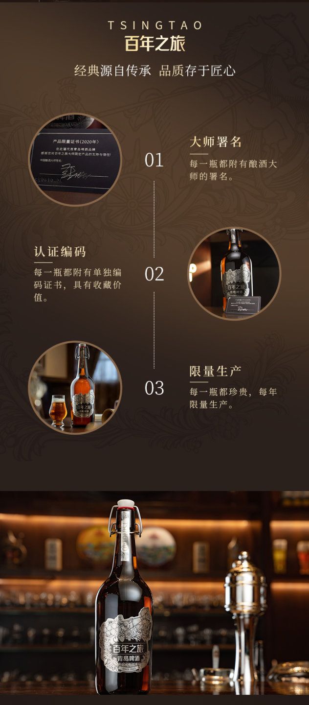 青岛啤酒(Tsingtao)百年之旅大师酒 15度815ml*1瓶 礼盒装