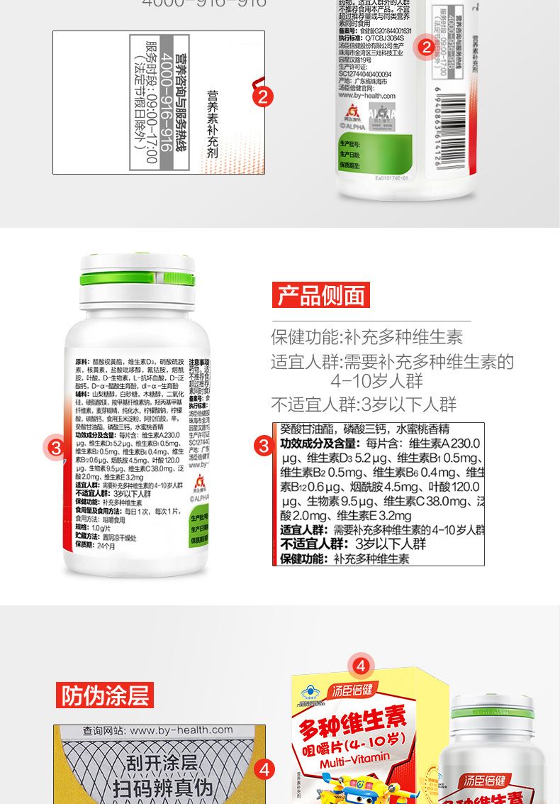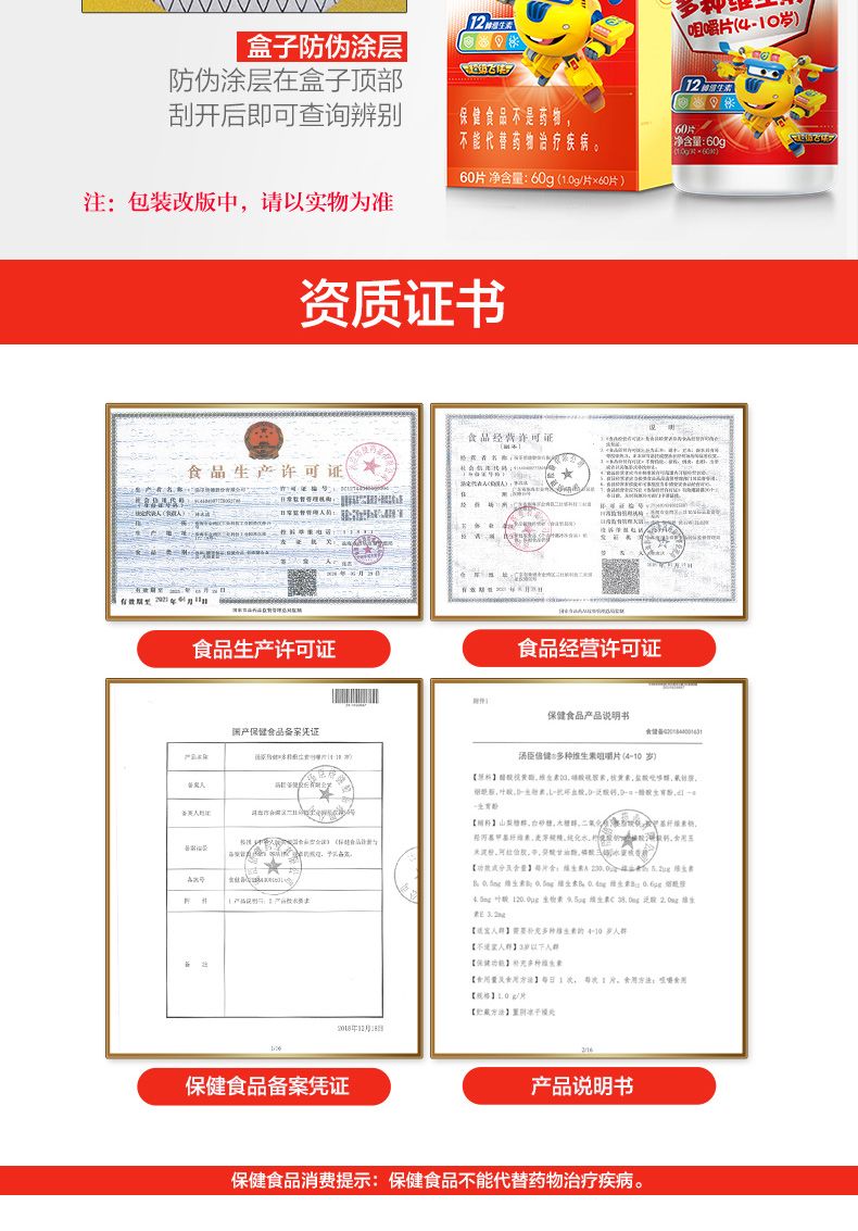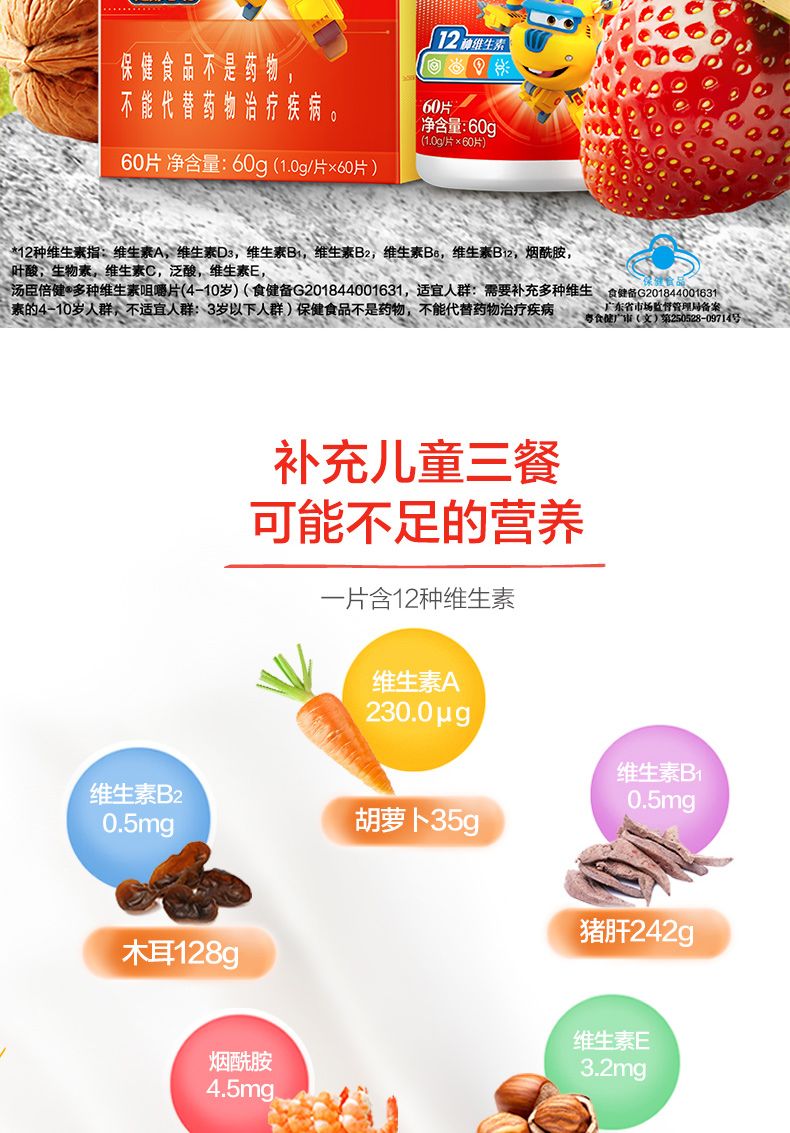 商品名称:汤臣倍健 多种维生素咀嚼片(4-10岁) 超级飞侠装 60片