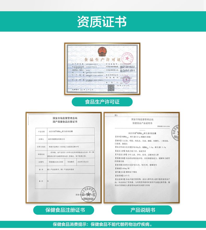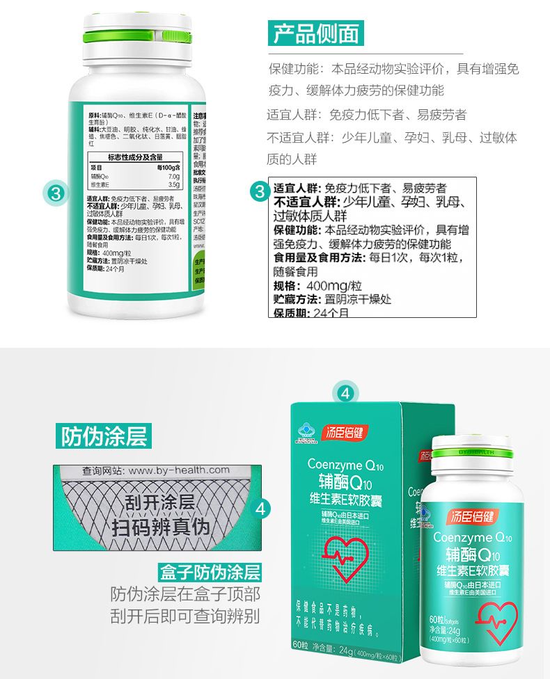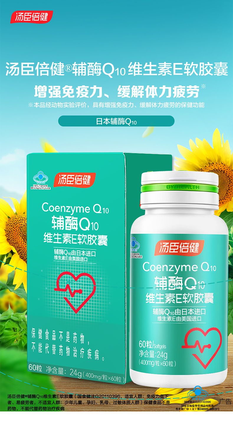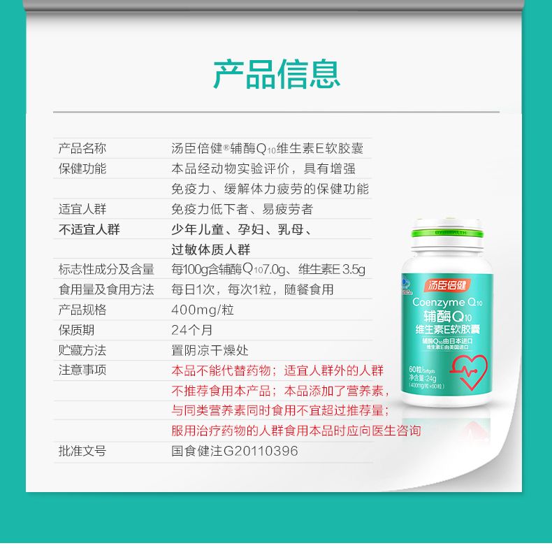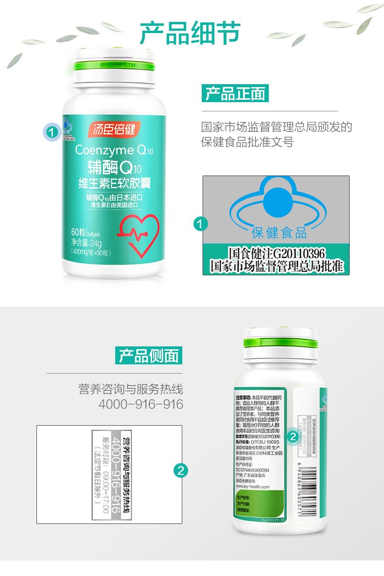 商品名称:汤臣倍健 辅酶Q10天然维生素E软胶囊24g(400mg*60粒)