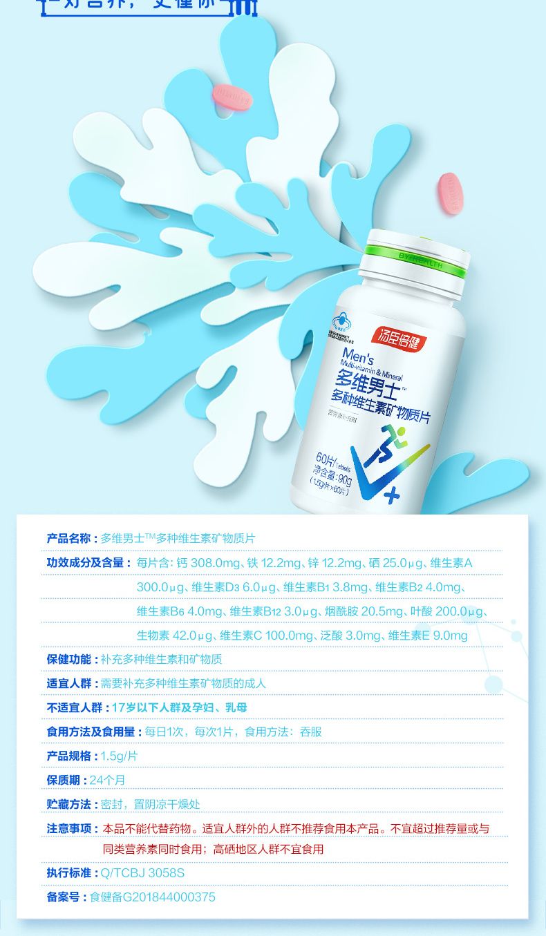 商品名称:汤臣倍健 多维男士多种维生素矿物质片双瓶优惠装