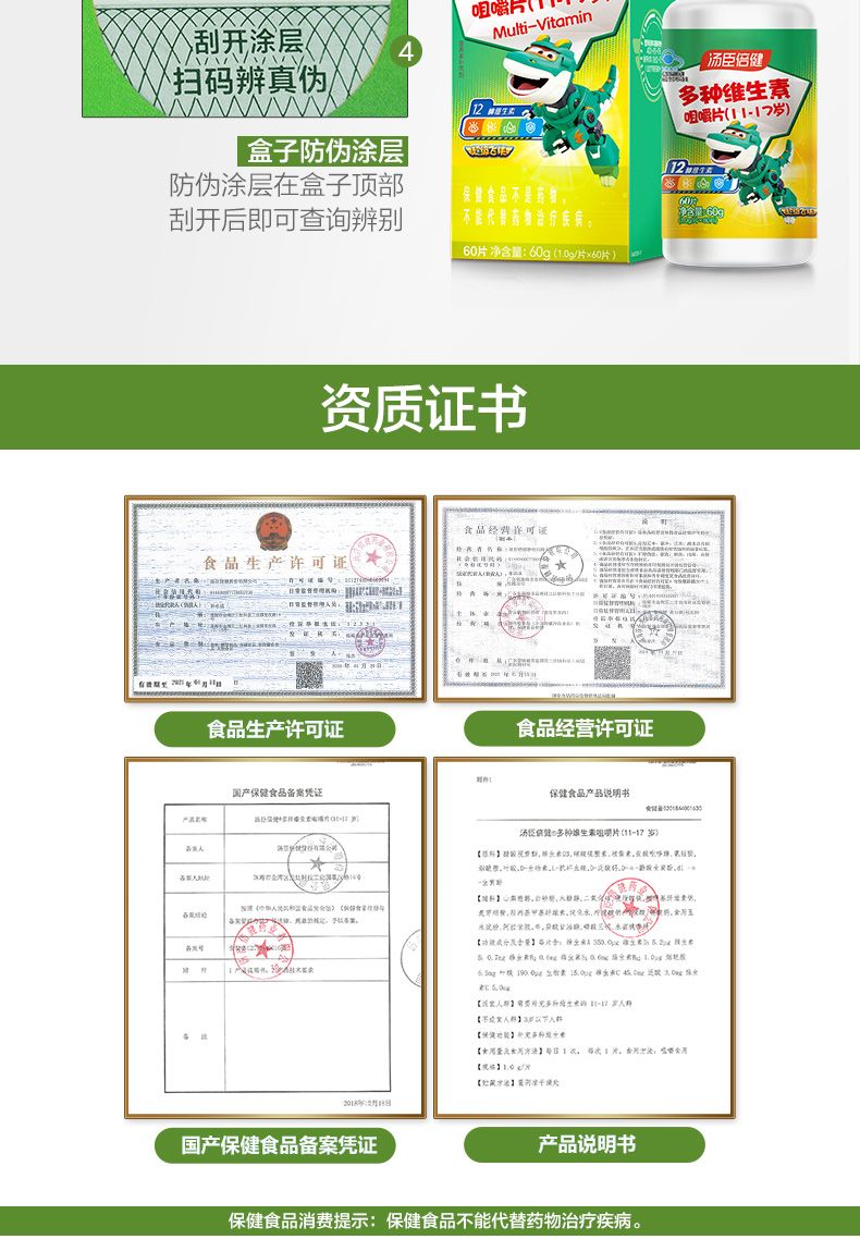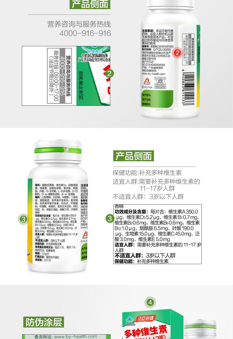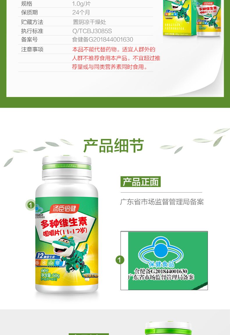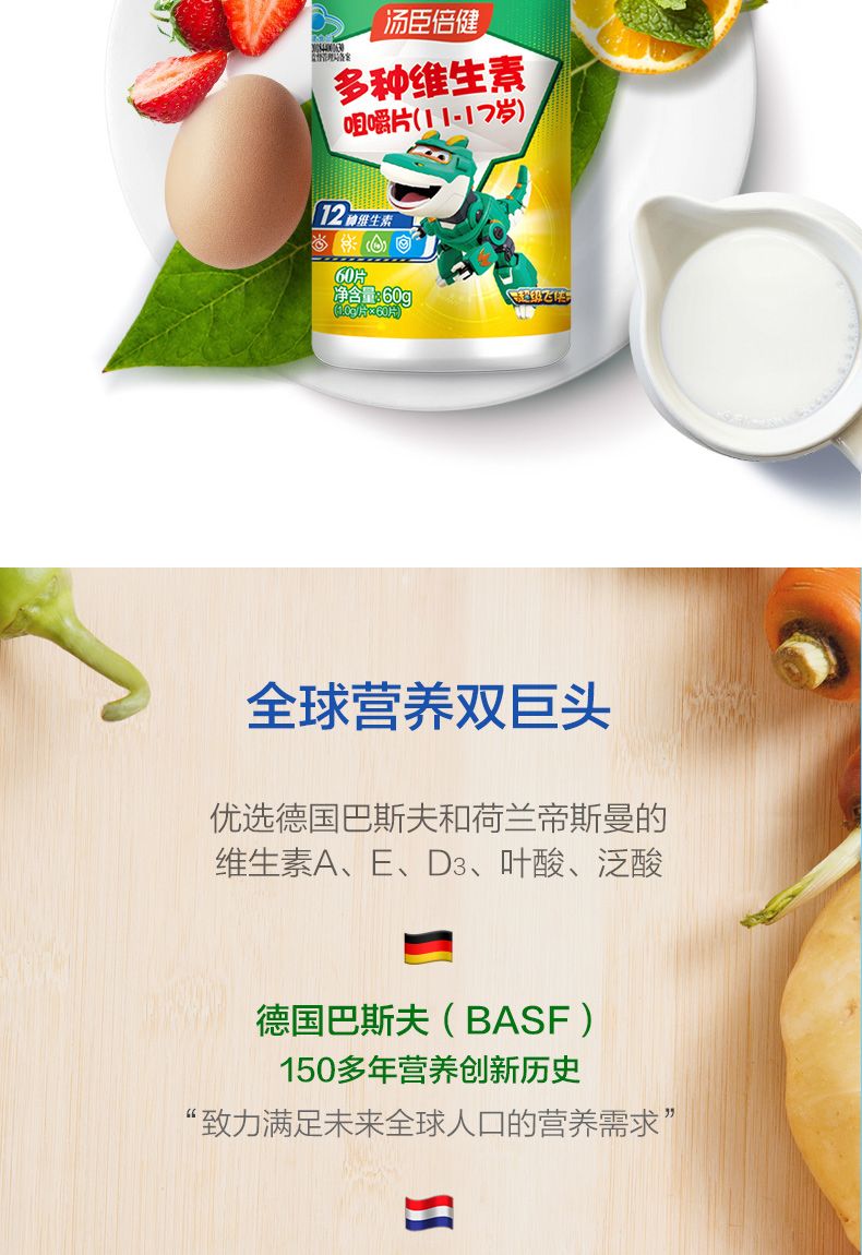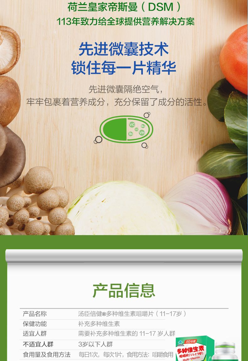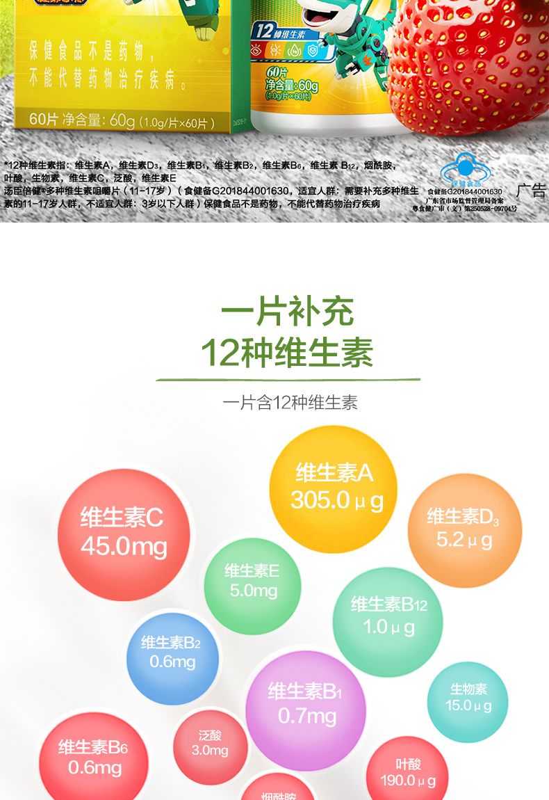 商品名称:汤臣倍健多种维生素咀嚼片(11-17岁)(1.0g/片×60片/瓶)
