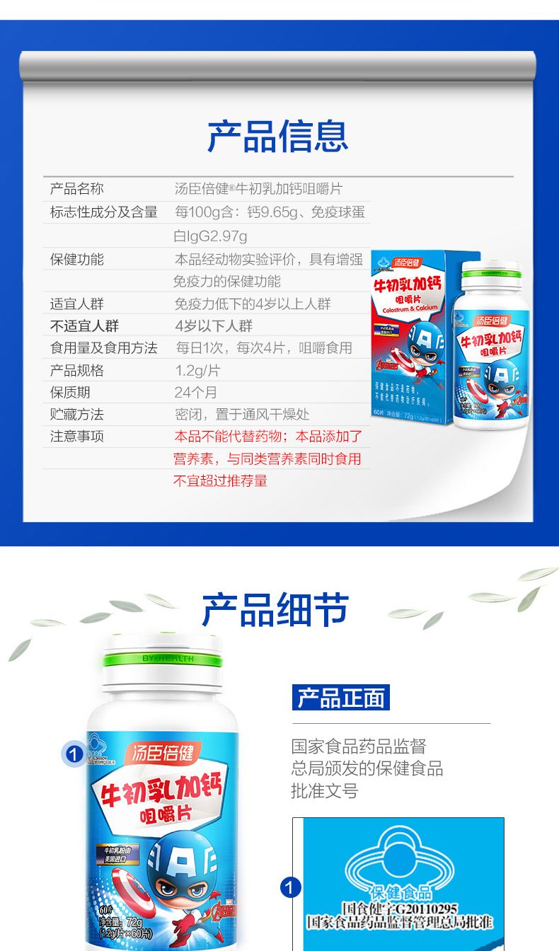 商品名称:汤臣倍健牛初乳加钙咀嚼片优惠装1.2g/片×60片/瓶×2瓶/盒