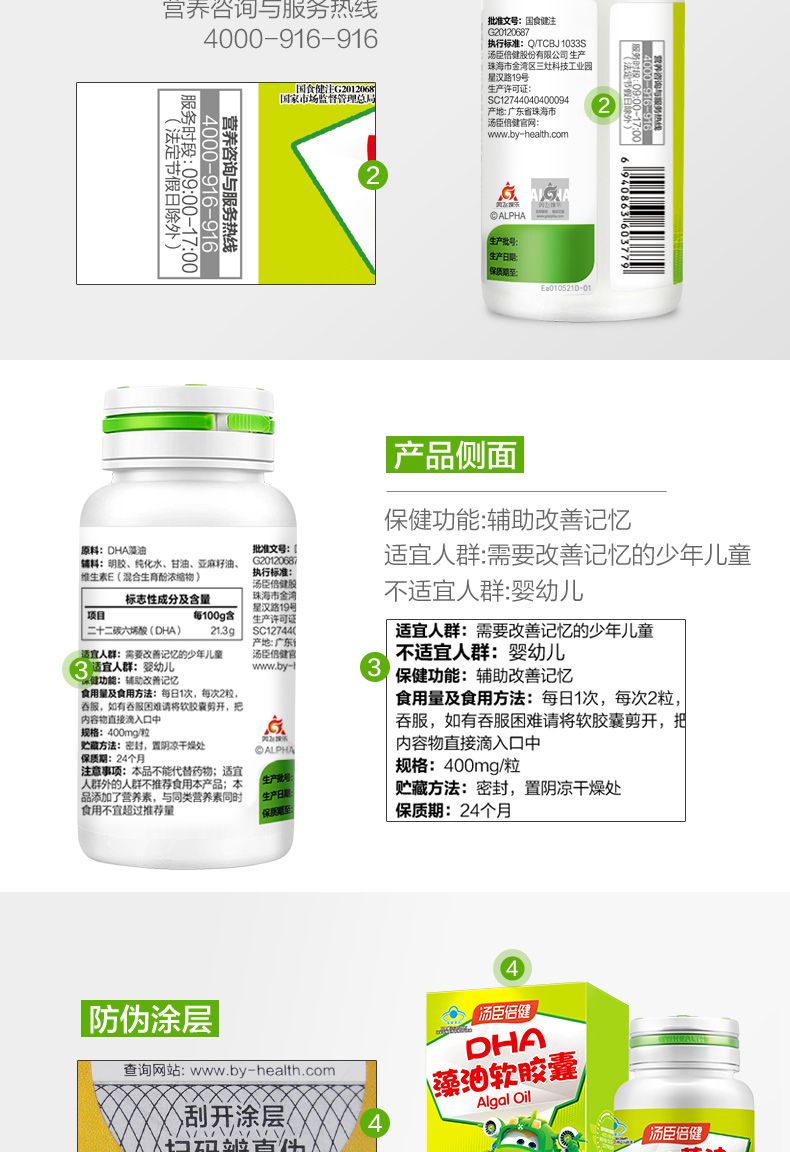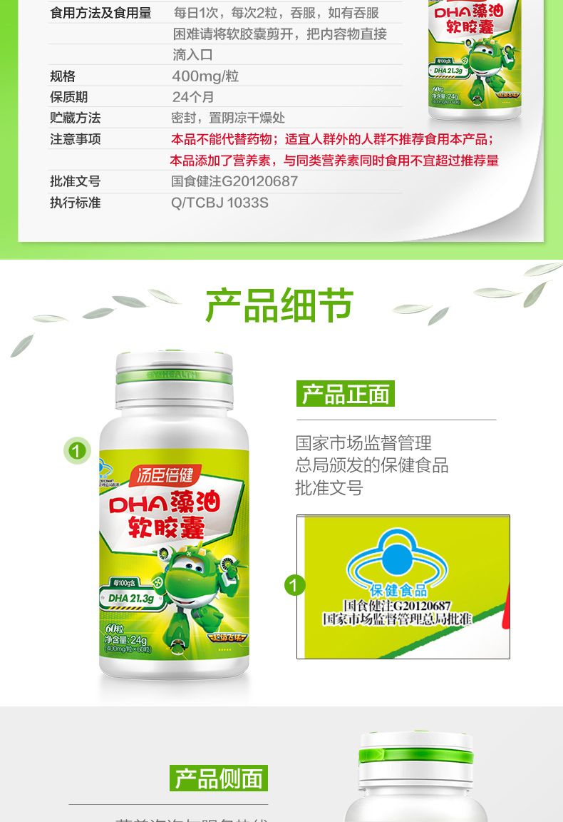 商品名称:汤臣倍健藻油软胶囊400mg/粒*60粒