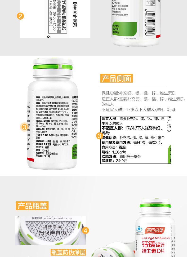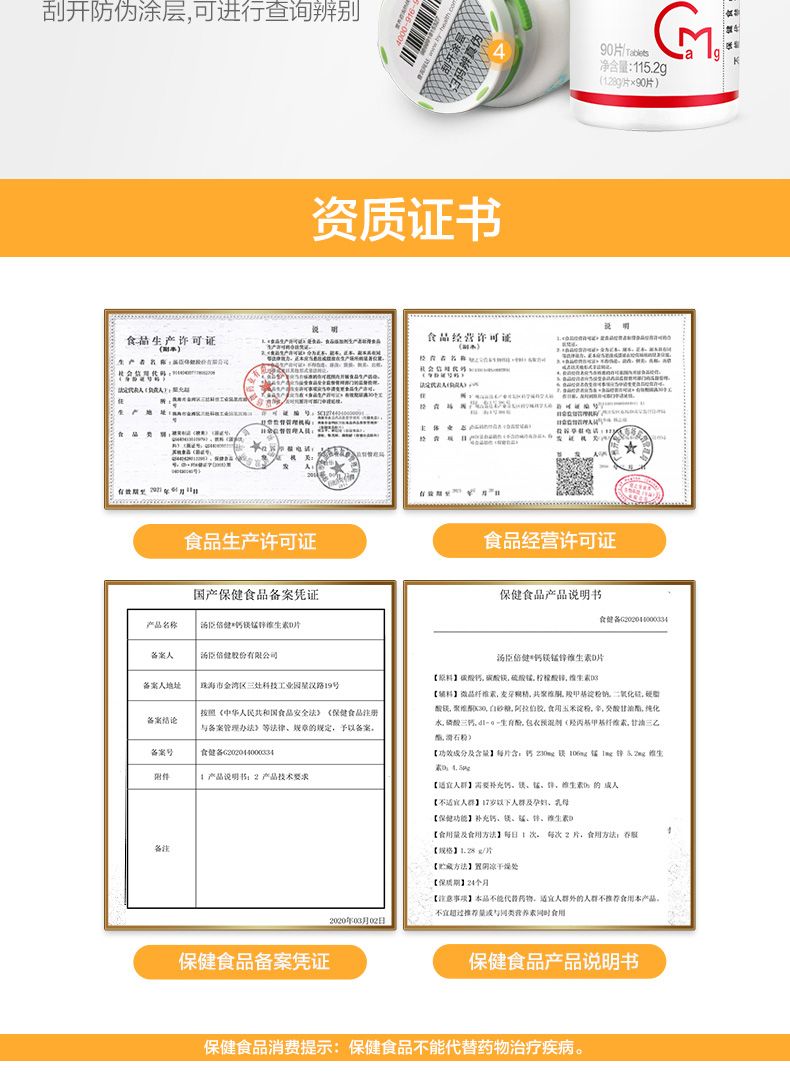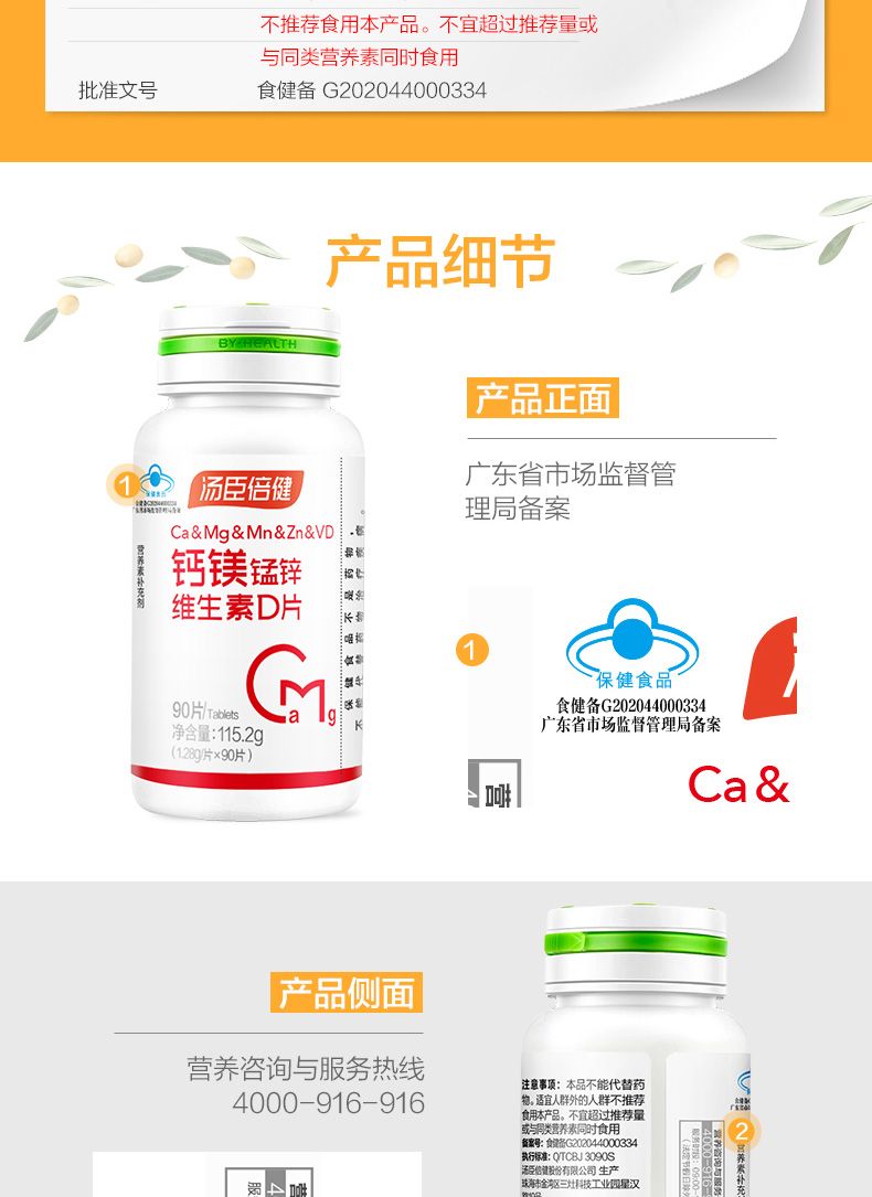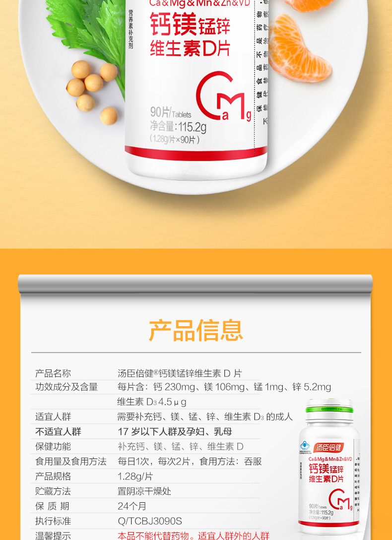 商品名称:汤臣倍健钙镁锰锌维生D片1.28g/片×90片/瓶
