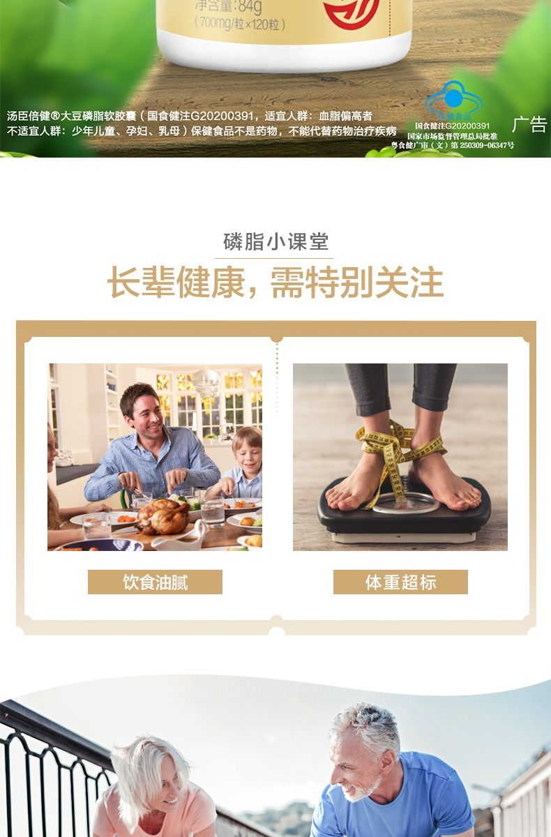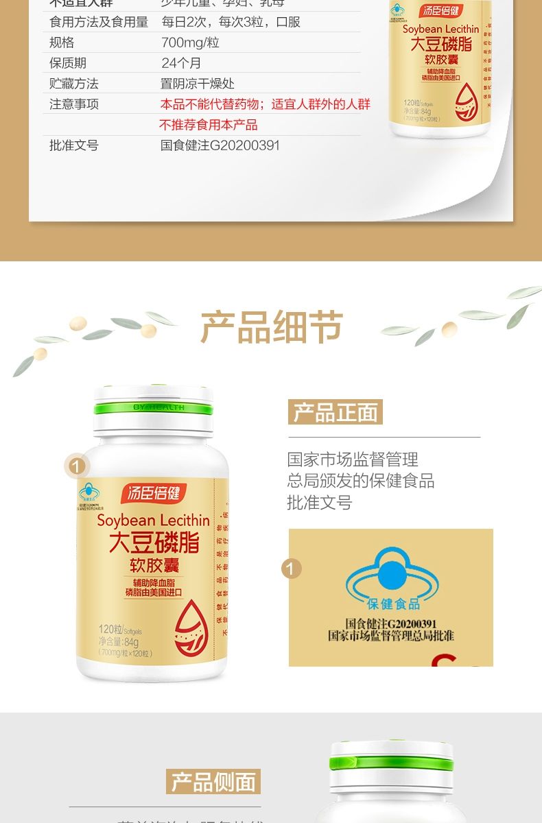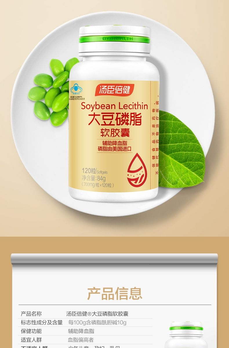 商品名称:汤臣倍健大豆磷脂软胶囊(120粒) 成人中老年男女 辅助降血脂 可以搭深海鱼油