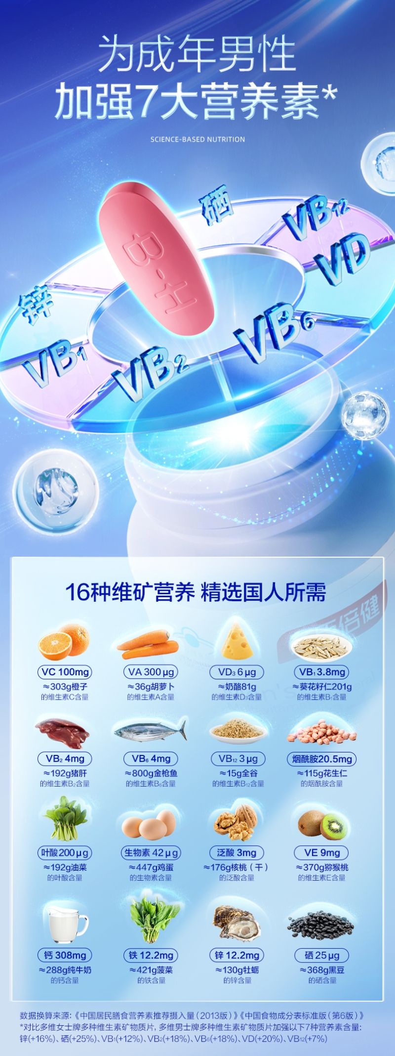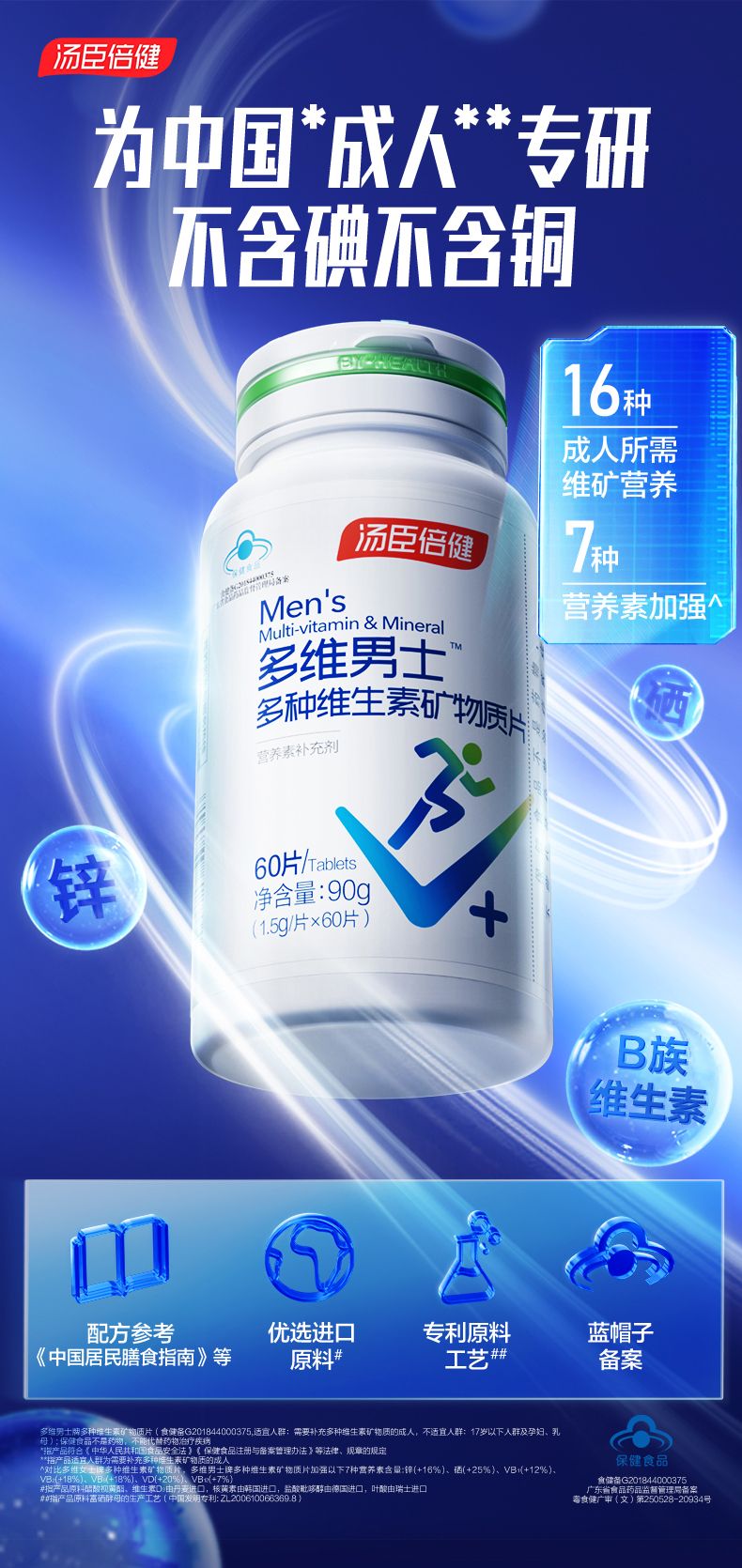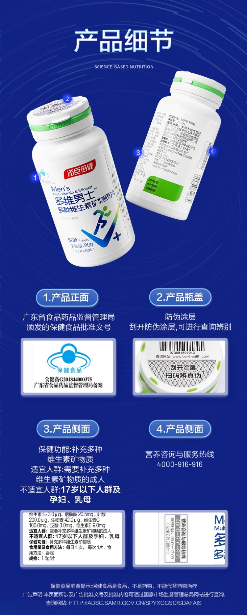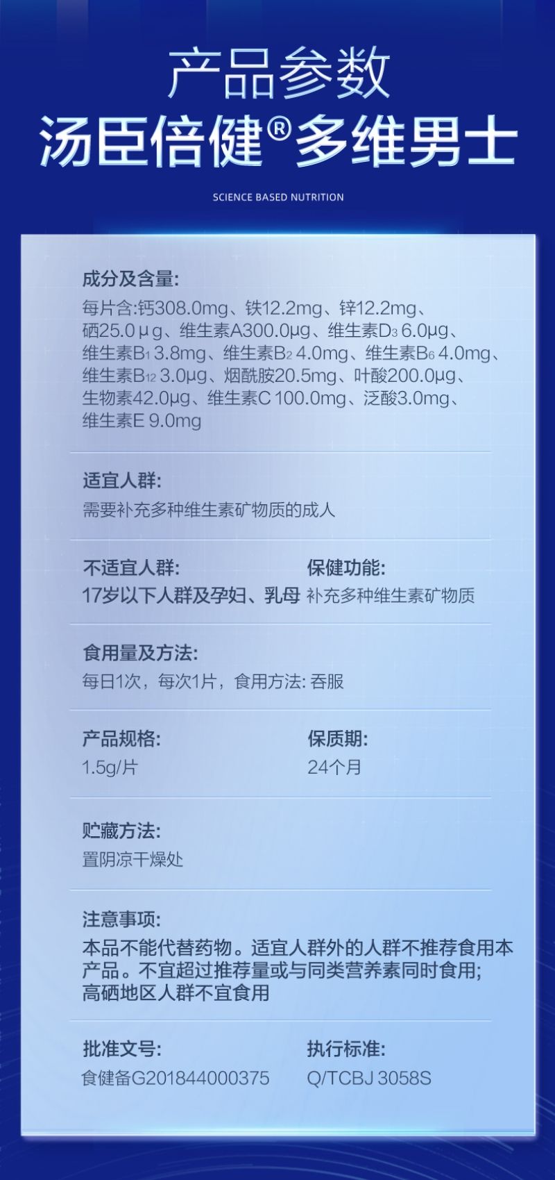 商品名称:汤臣倍健多维男士 多种维生素矿物质片 60 片×2瓶(礼盒装)