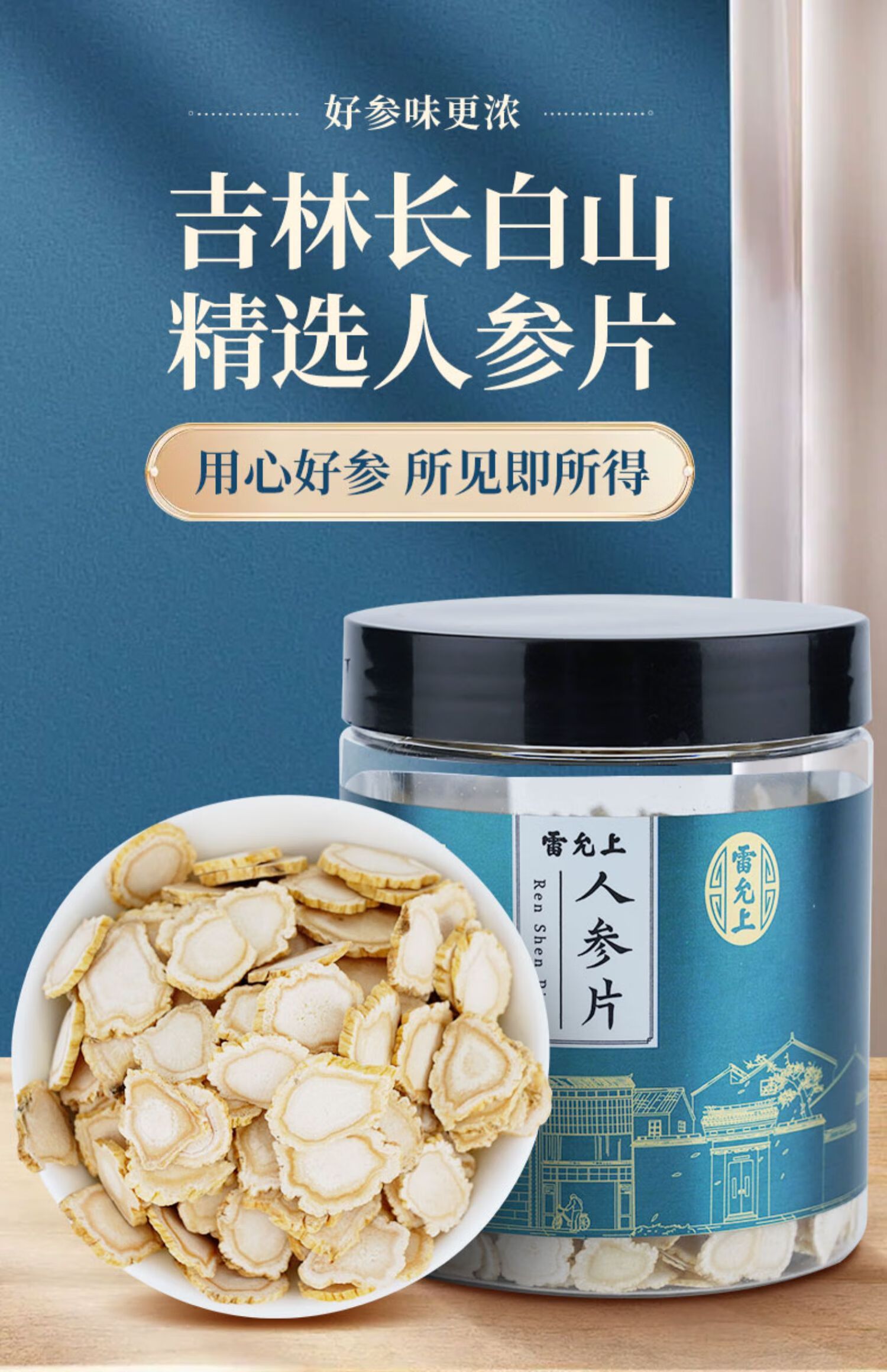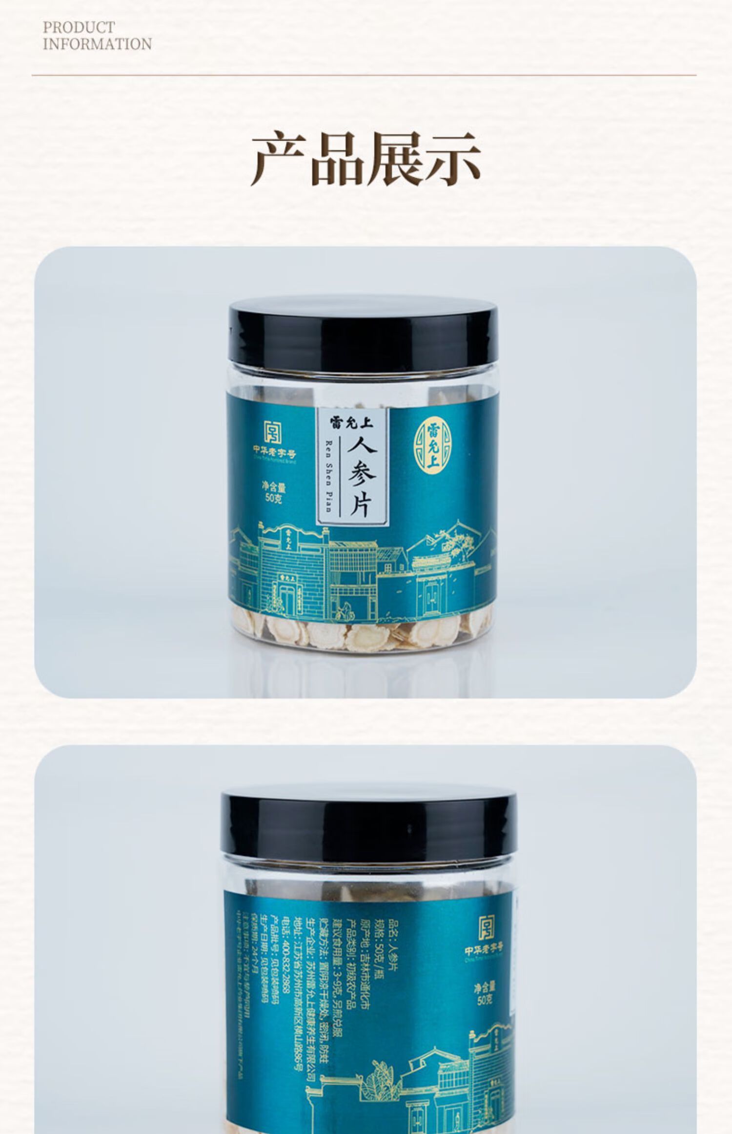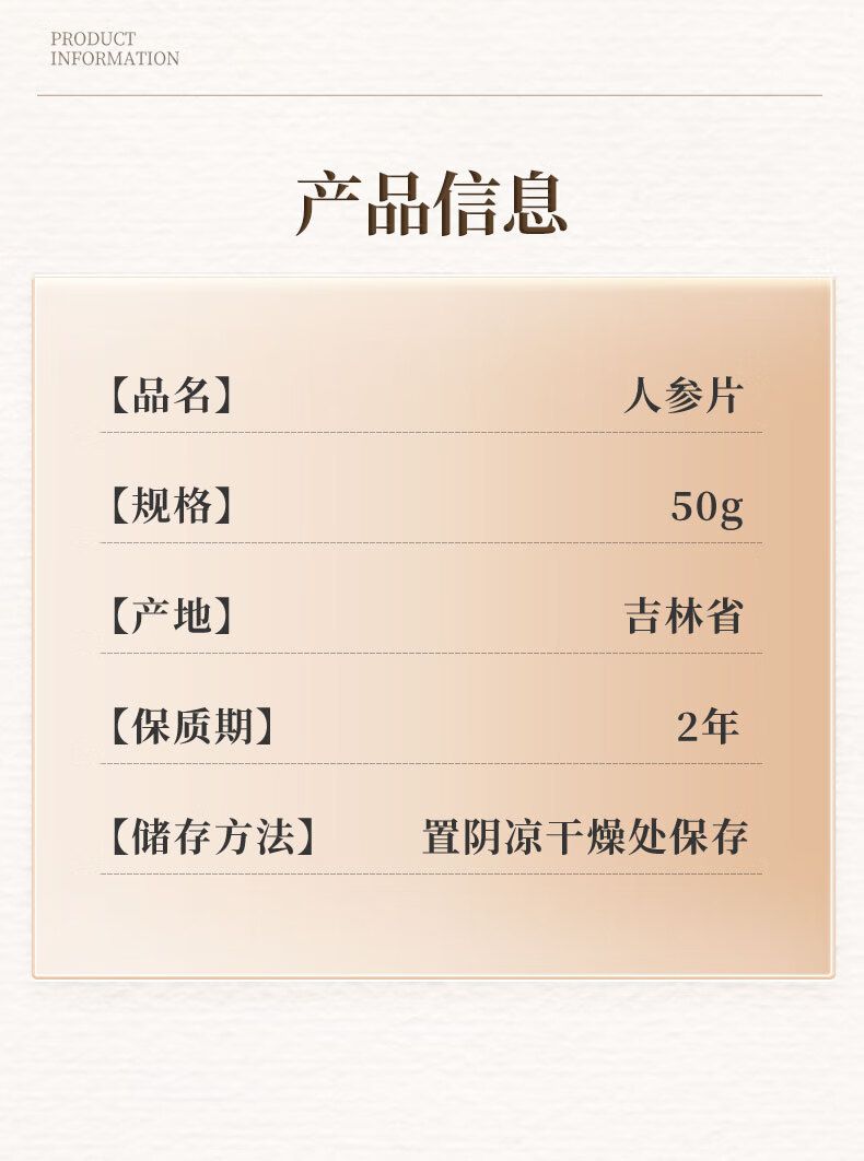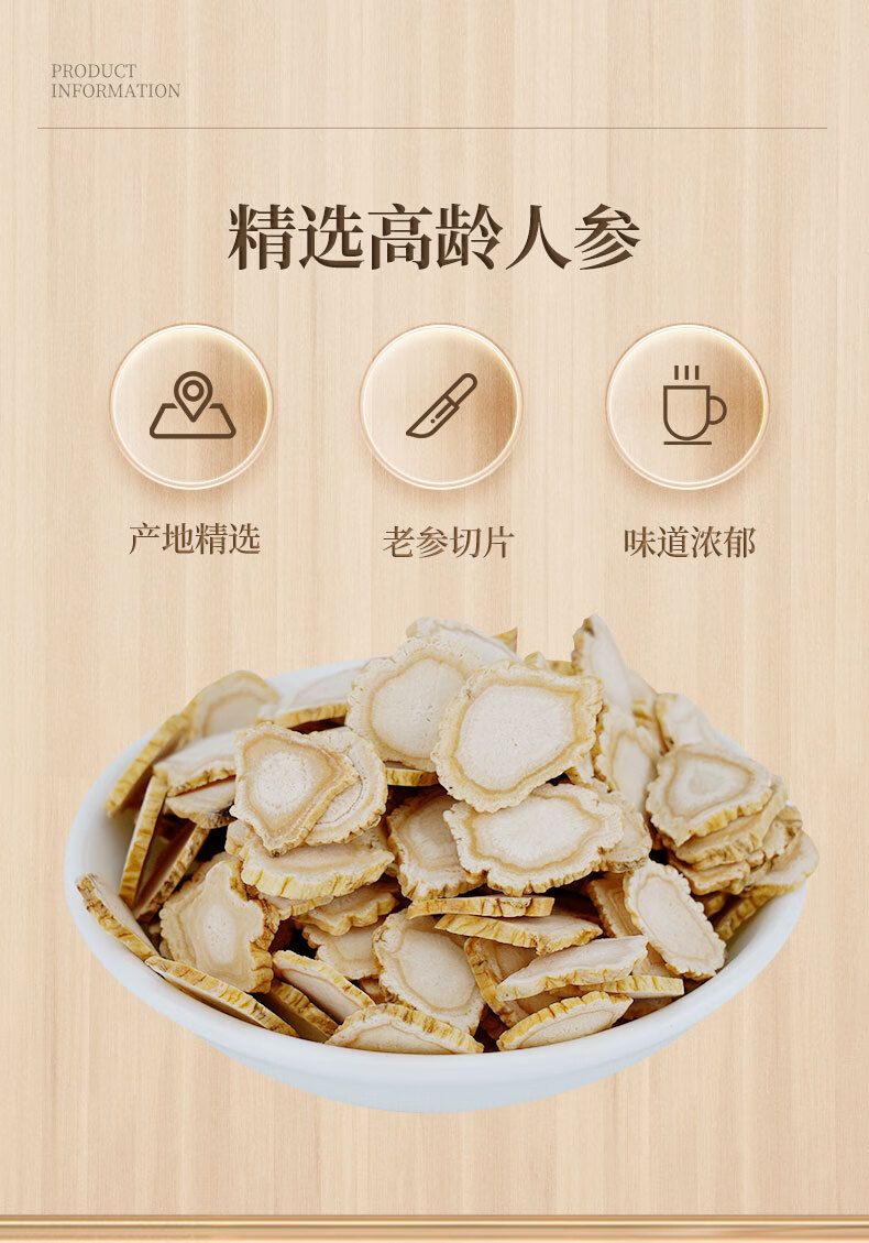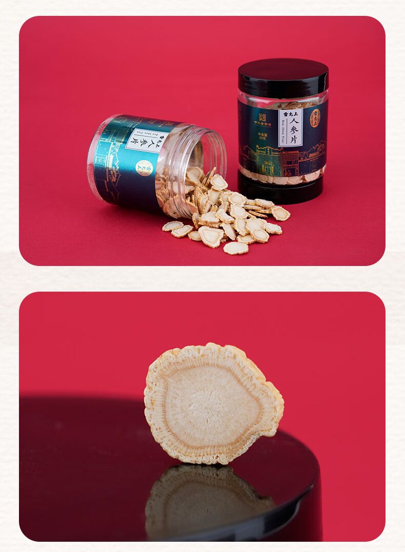 商品名称:雷允上 人参片100g 东北长白山人参切片可泡水泡酒 人参片50g*2瓶