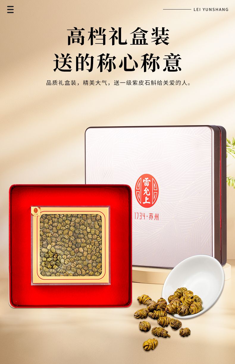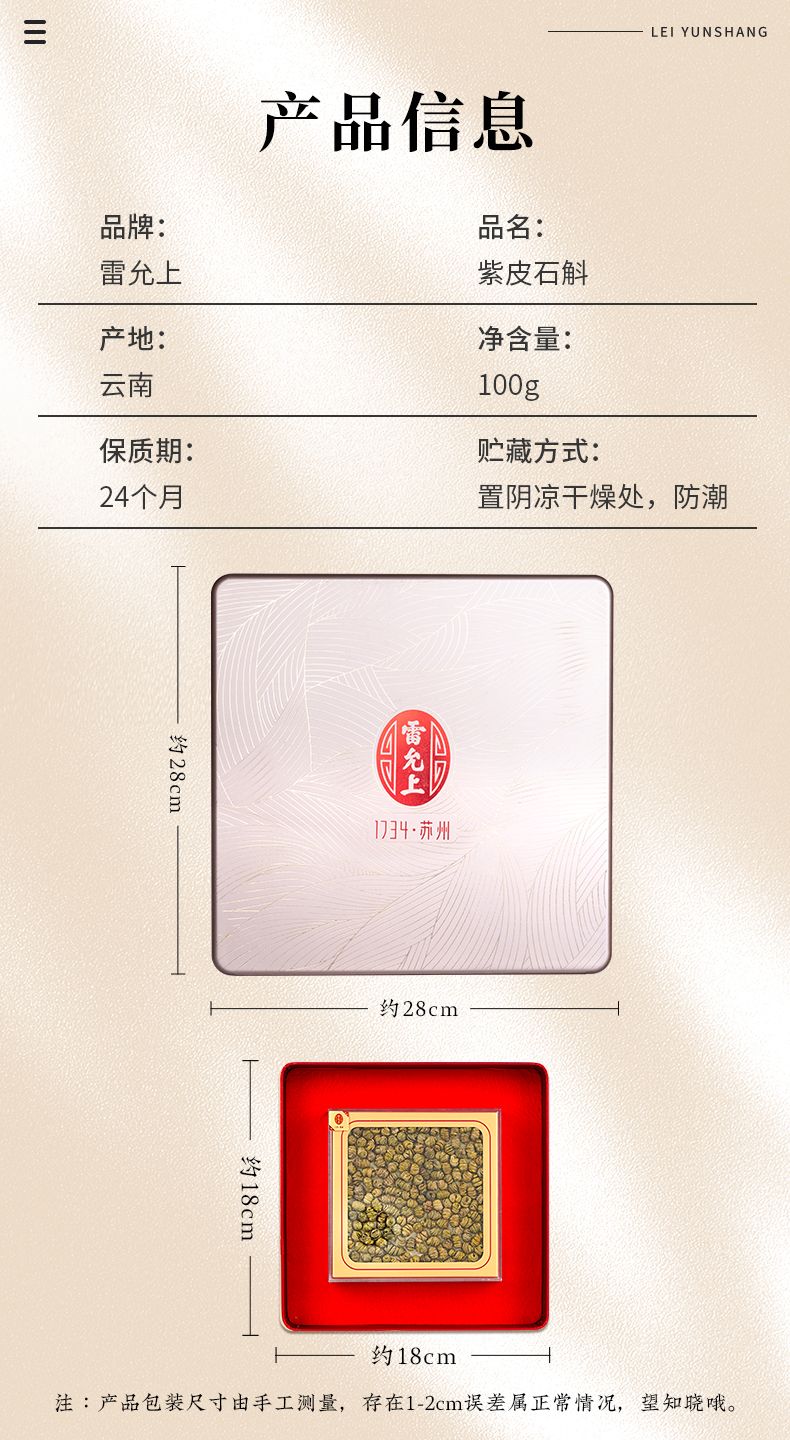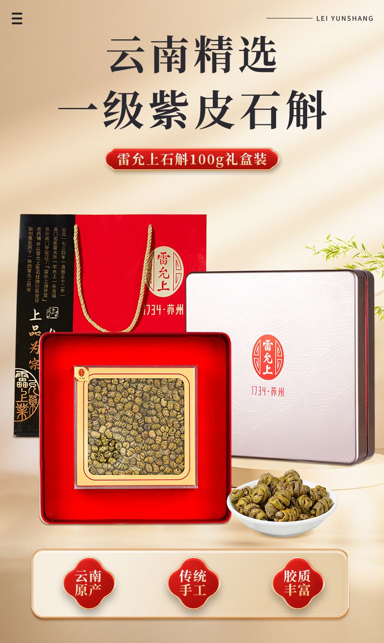 商品名称:雷允上 紫皮一级石斛礼盒100g 石斛枫斗 石斛鲜条加工胶质饱满