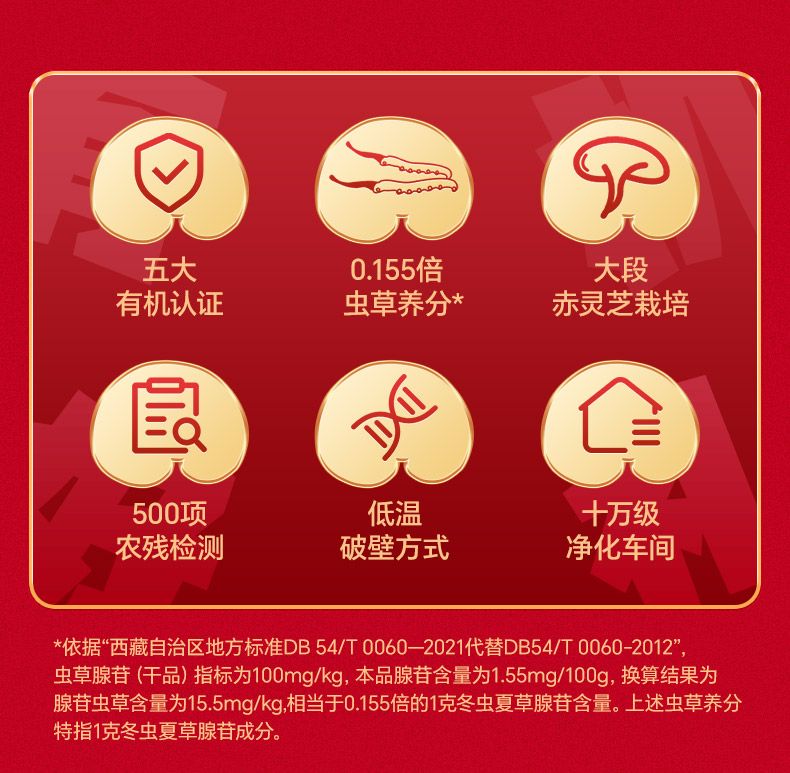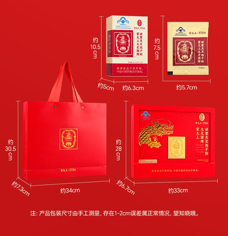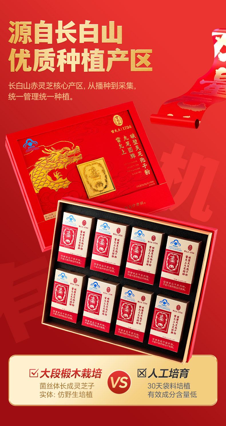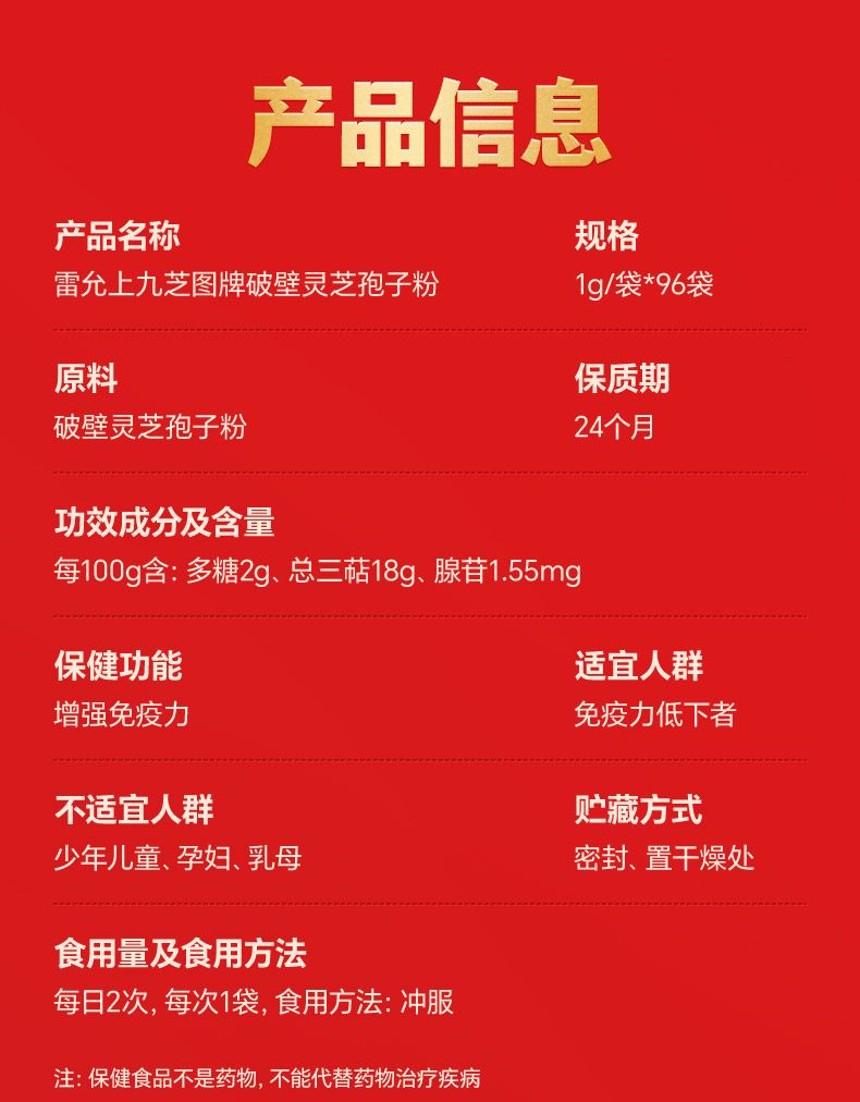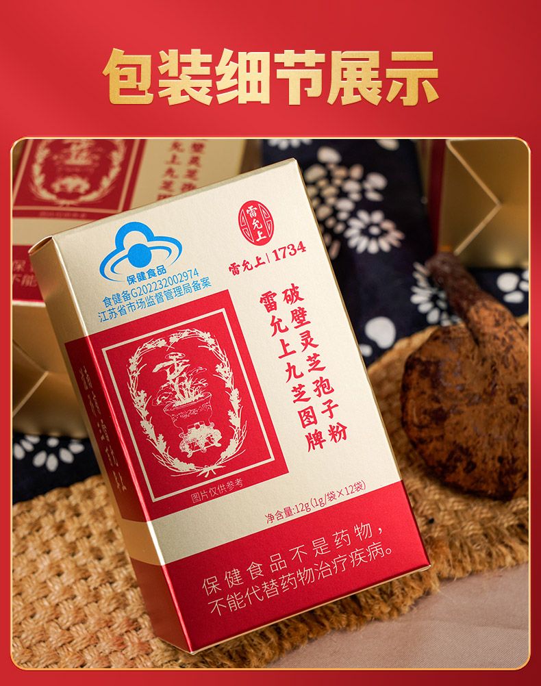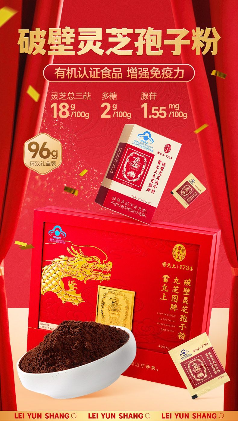 商品名称:雷允上九芝图 5大有机认证 破壁灵芝孢子粉96袋 成年中老年增强96g