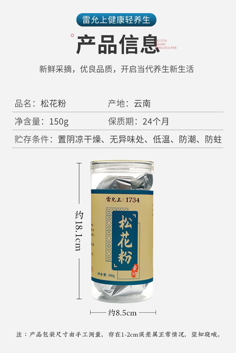 商品名称:雷允上 头道松花粉 食用可外用爽身粉 松花粉150克*3罐
