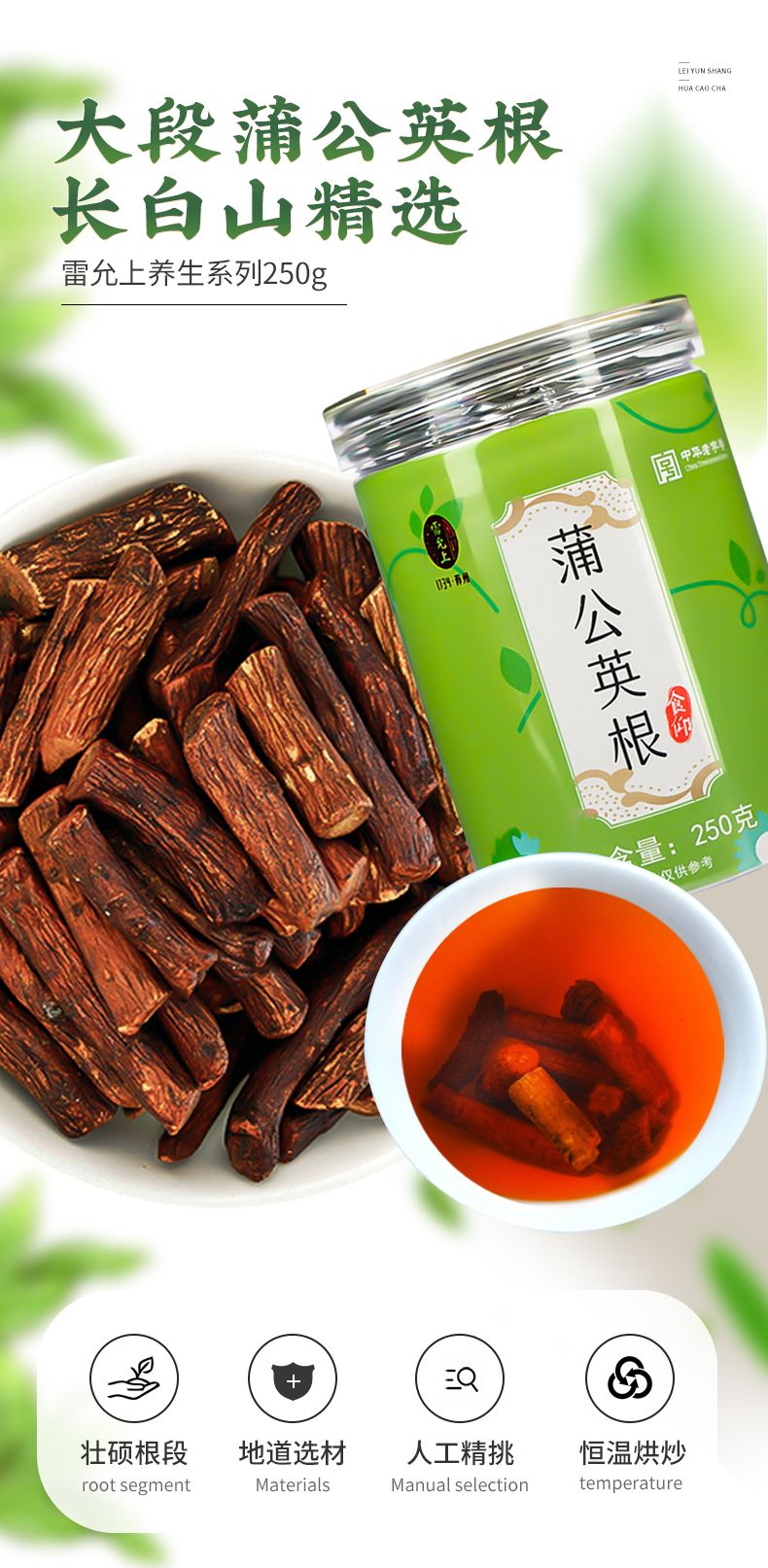 雷允上蒲公英根茶长白山产煮水泡茶女性婆婆丁茶250克*2瓶