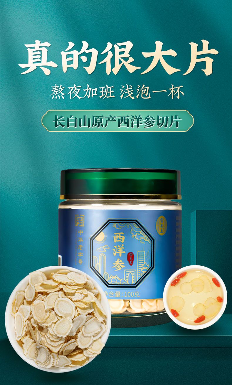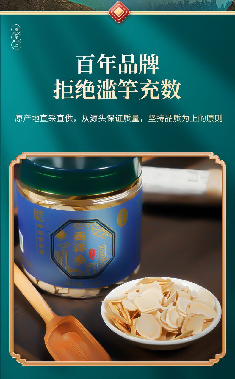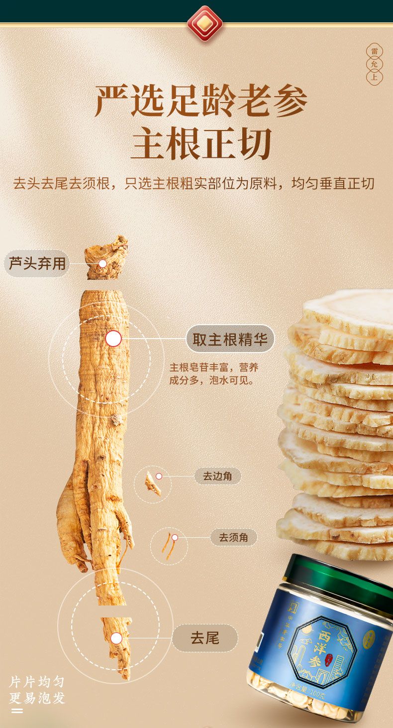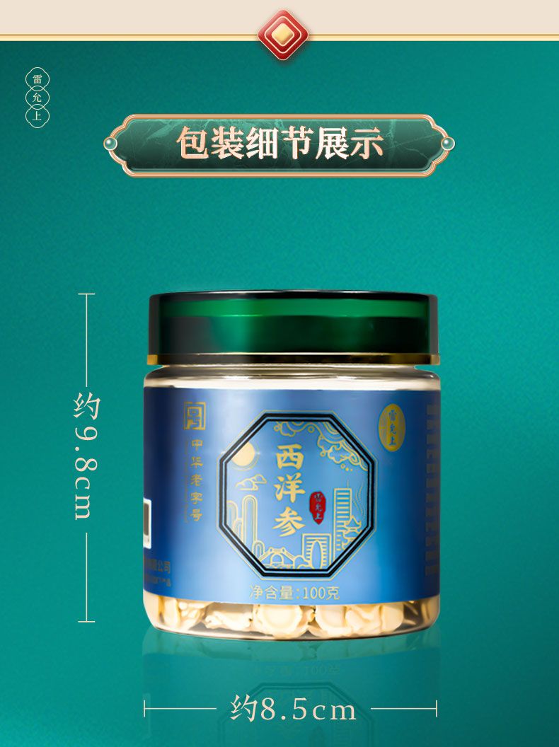 商品名称:西洋参雷允上 雷允上长白山西洋参100g国产花旗参1.2-1.4cm切片人参含片泡水 雷允上国产西洋参100g