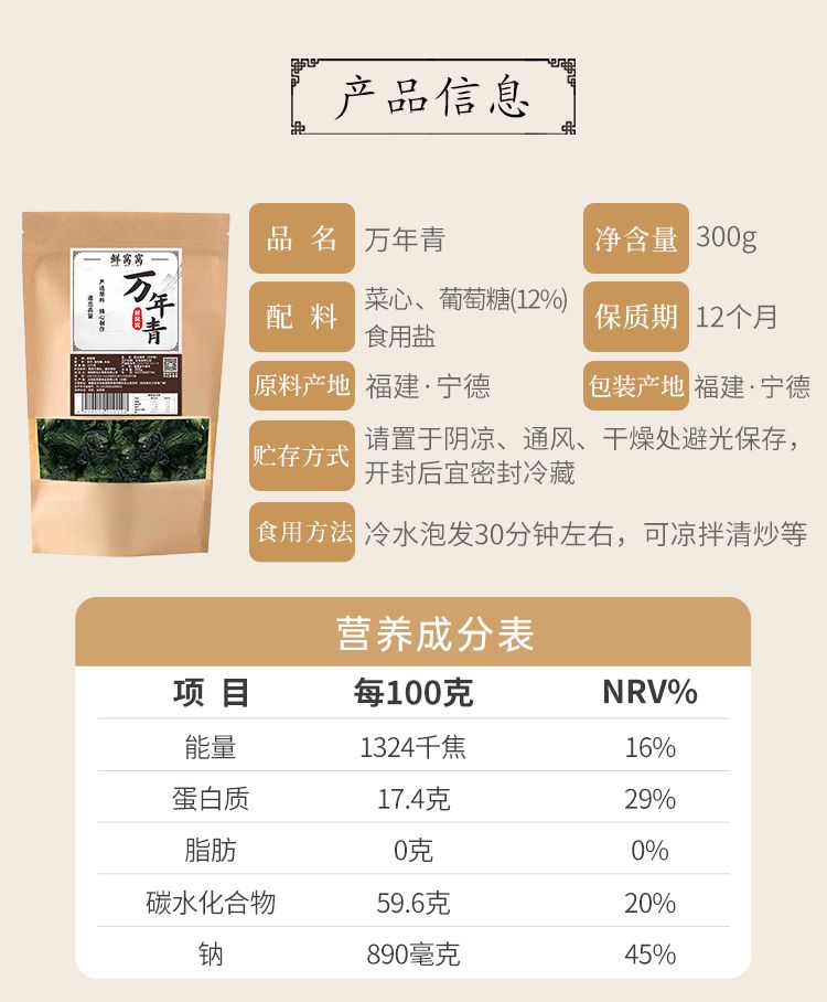 商品名称:鲜窝窝 万年青300g