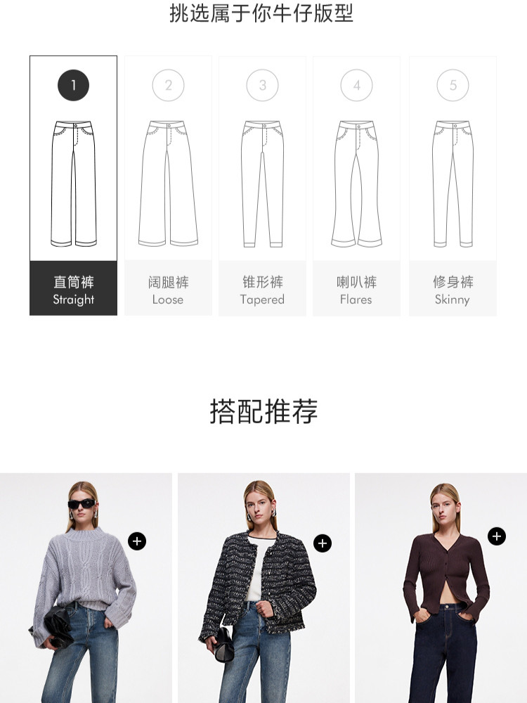 商品名称:【经典烟管裤磨毛内里】24夏季直筒烟裤九分裤牛仔裤女 422810