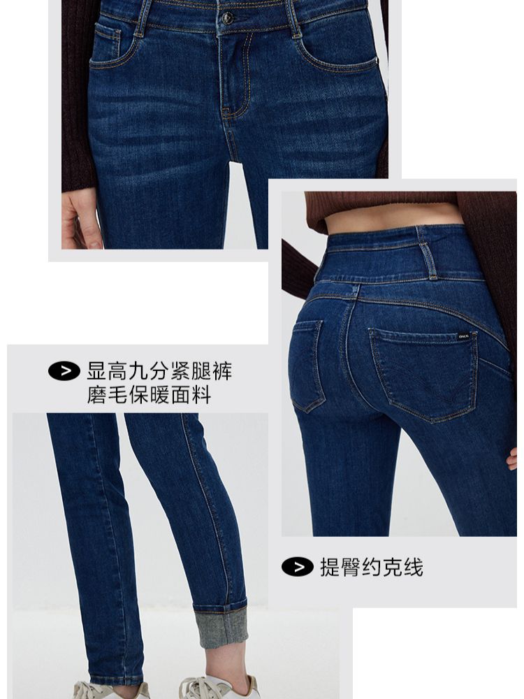 商品名称:【时尚潮流】春季时尚潮流高腰九分加绒牛仔裤女 799834