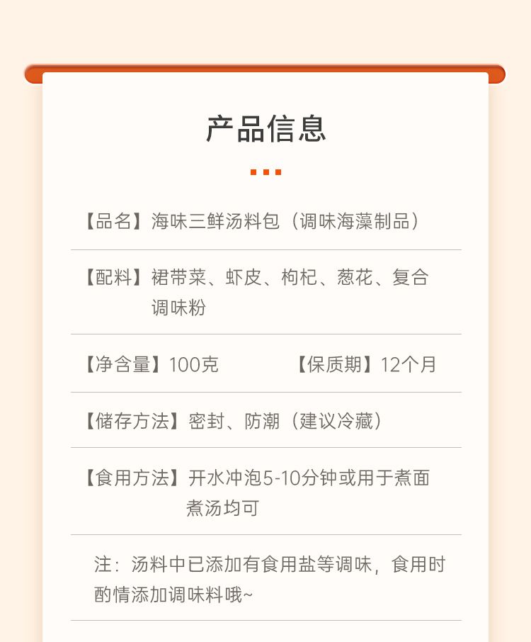 商品名称:鲜窝窝 海味三鲜汤料包100g