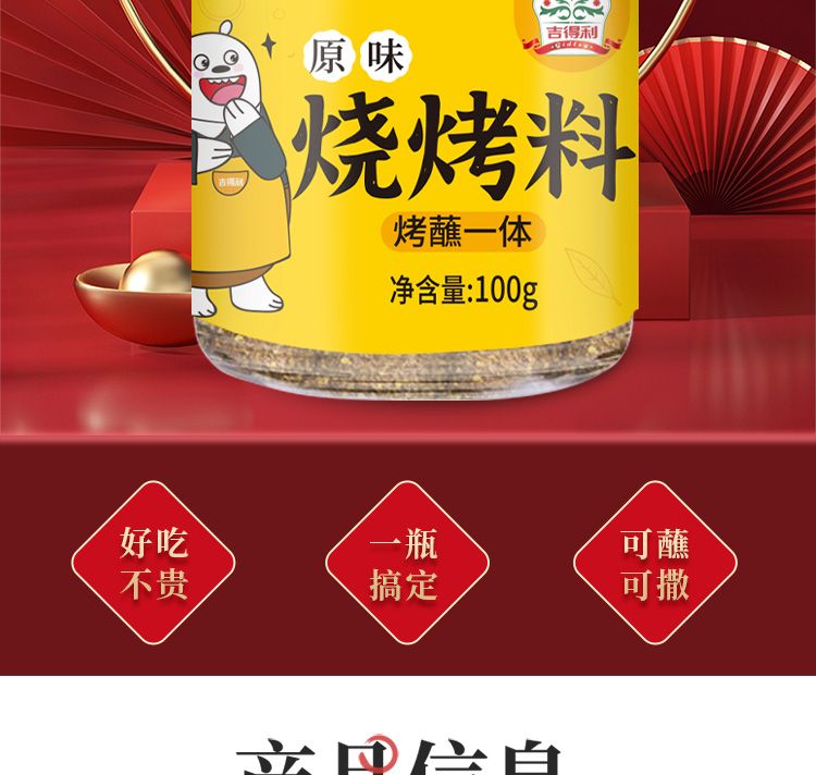 商品名称:吉得利 烧烤料原味100g*3罐