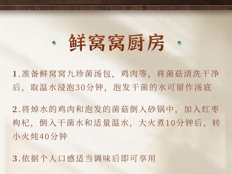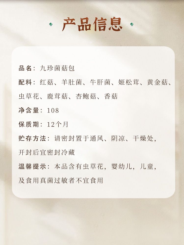 商品名称:鲜窝窝 九珍菌汤包108g