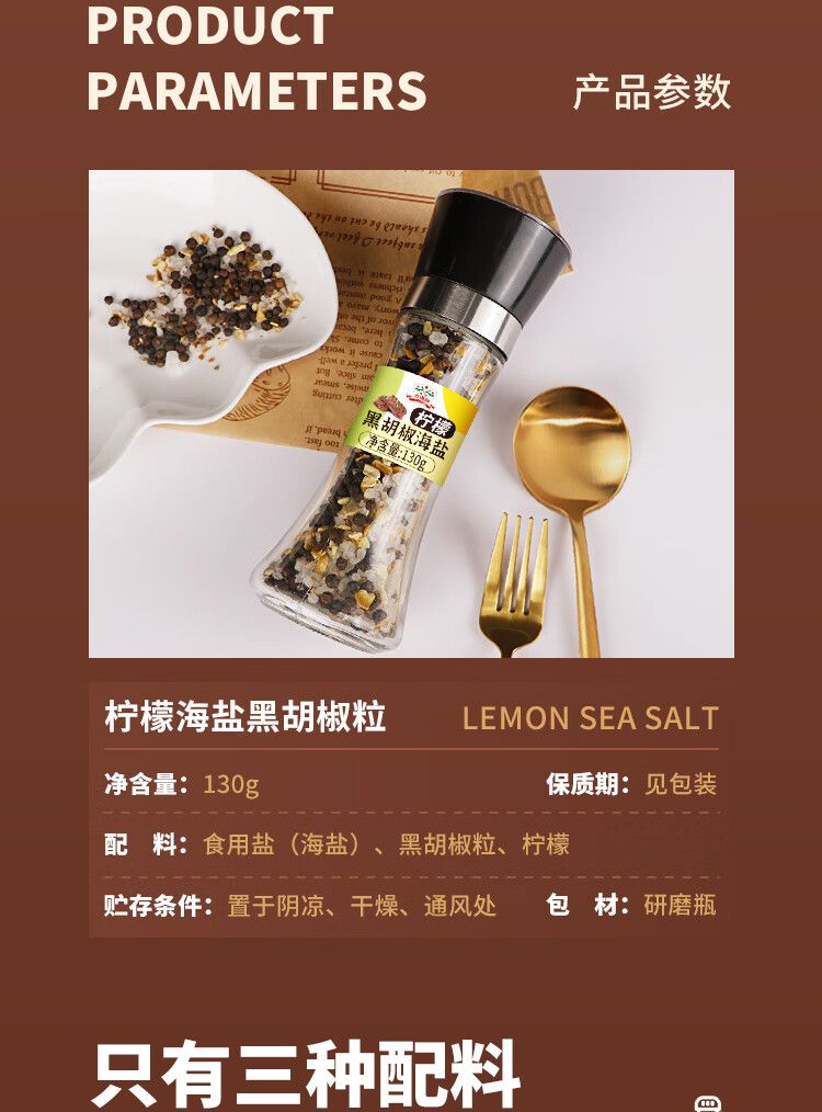 商品名称:吉得利 柠檬海盐黑胡椒130g*2瓶