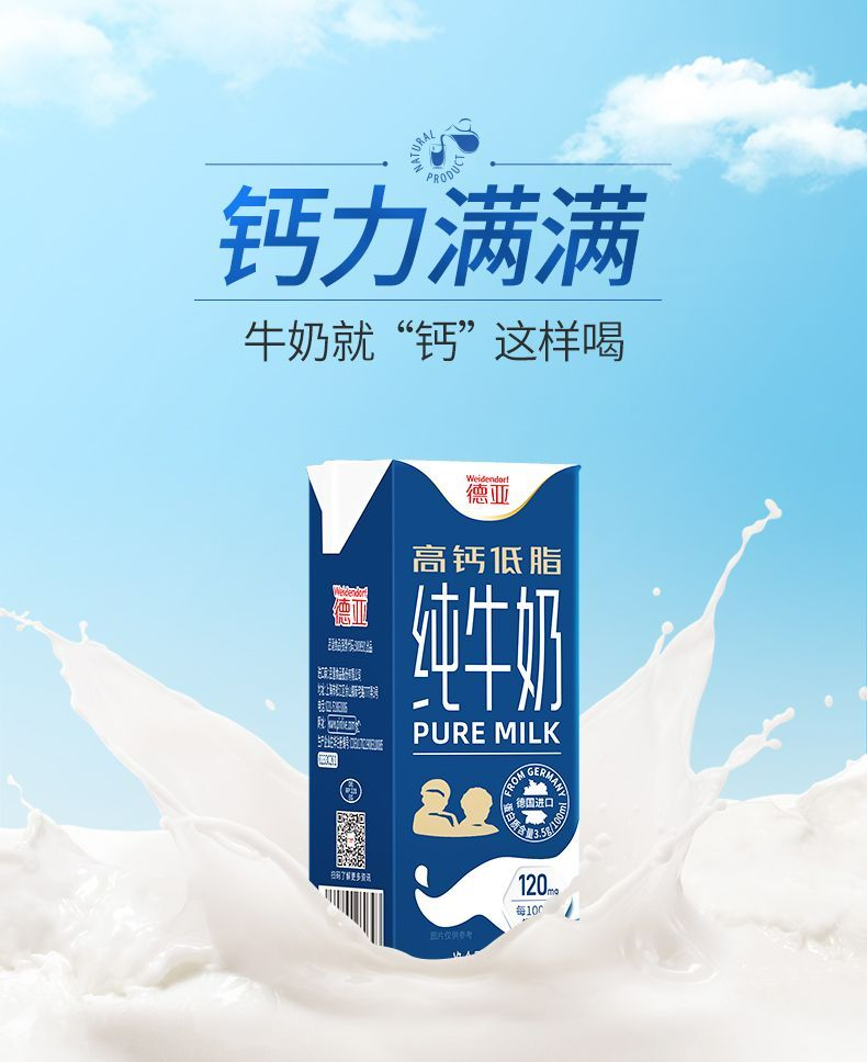 德亚进口高钙低脂牛奶200ml*10