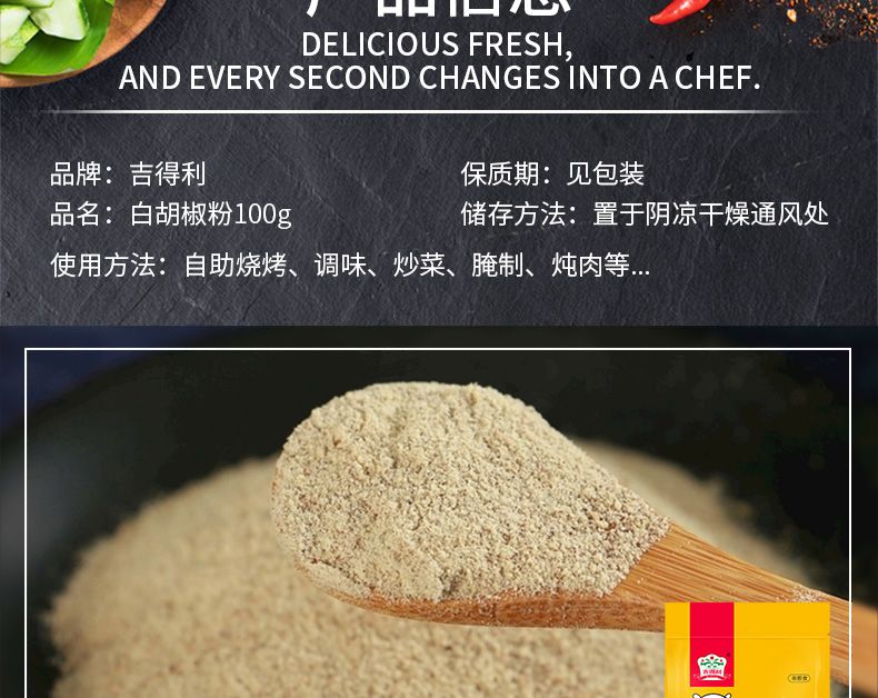 商品名称:吉得利 白胡椒粉100g(制品)*3袋