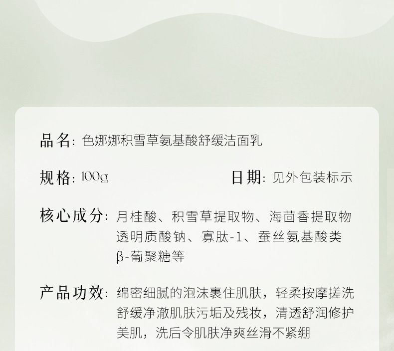 商品名称:色娜娜积雪草氨基酸舒缓洁面乳100g 4款可选