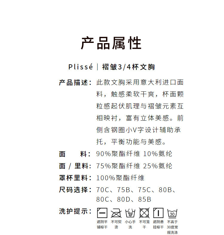 商品名称:NEIWAI 褶皱3/4杯V型钢圈文胸薄杯精致美感 664970