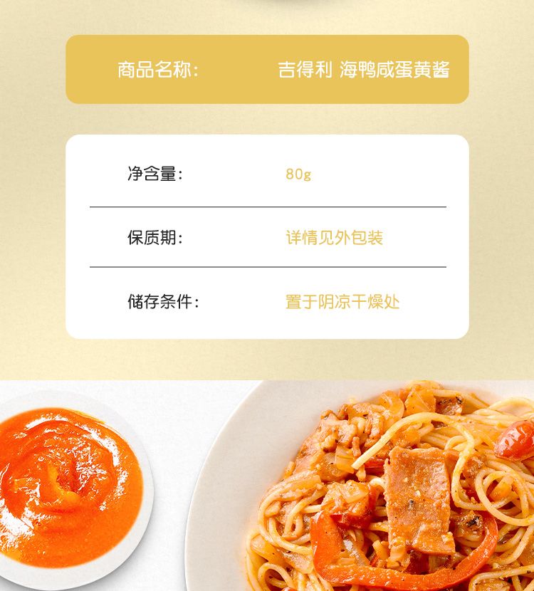 商品名称:吉得利 海鸭咸蛋黄酱80g*2瓶
