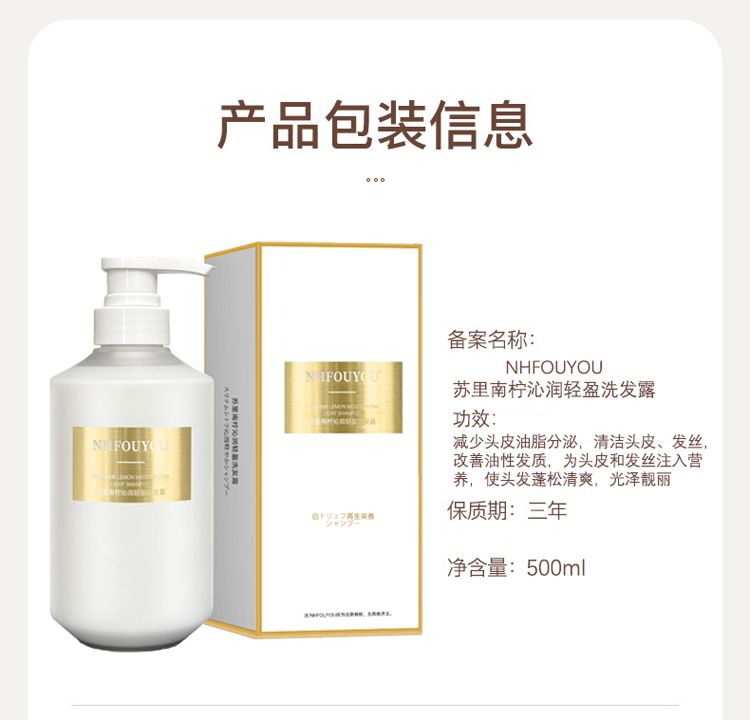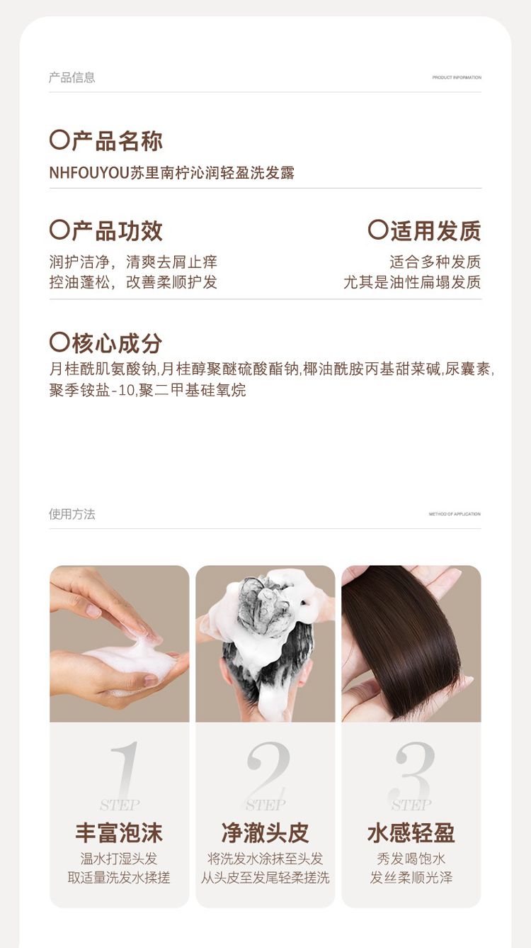 商品名称:NHFOUYOU/草本优子苏里南柠沁润轻盈洗发露500ml/瓶