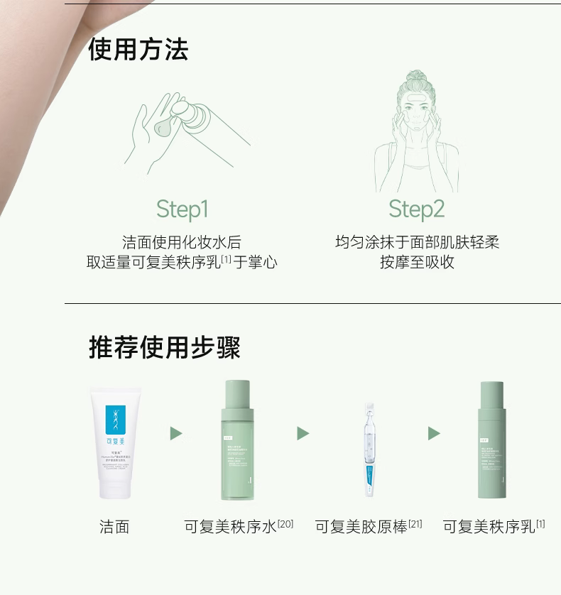 商品名称:可复美 OK秩序水乳套装稀有人参皂苷致研控油精华爽肤精华水乳巨子生物 水150ml+乳80g