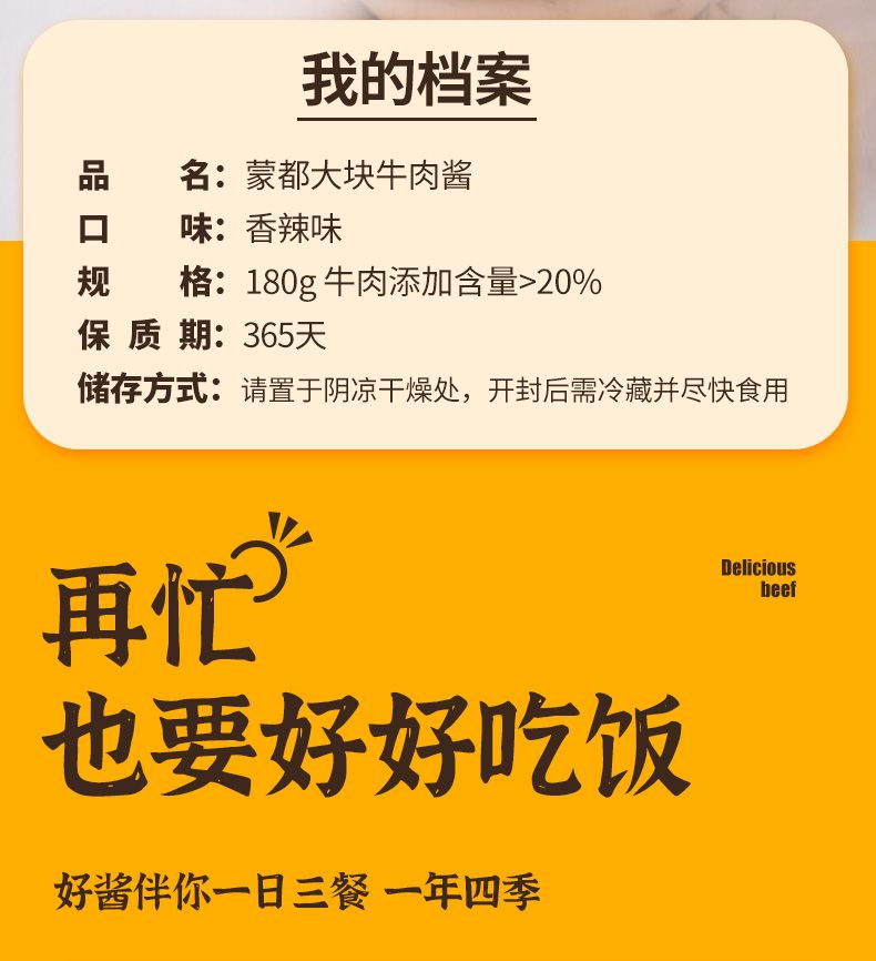 商品名称:蒙都 180g大块牛肉酱原味*2180g大块牛肉酱原味*3