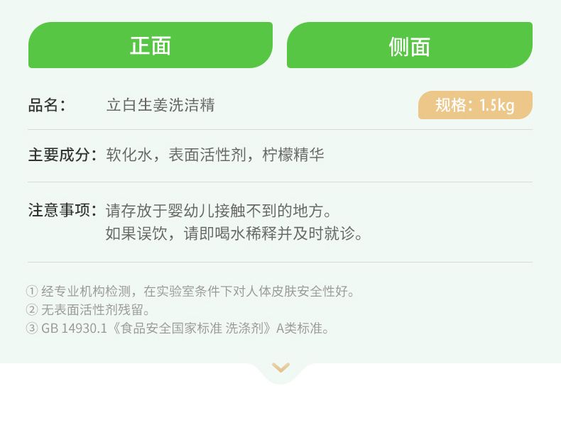 商品名称:立白生姜洗洁精1.5kg