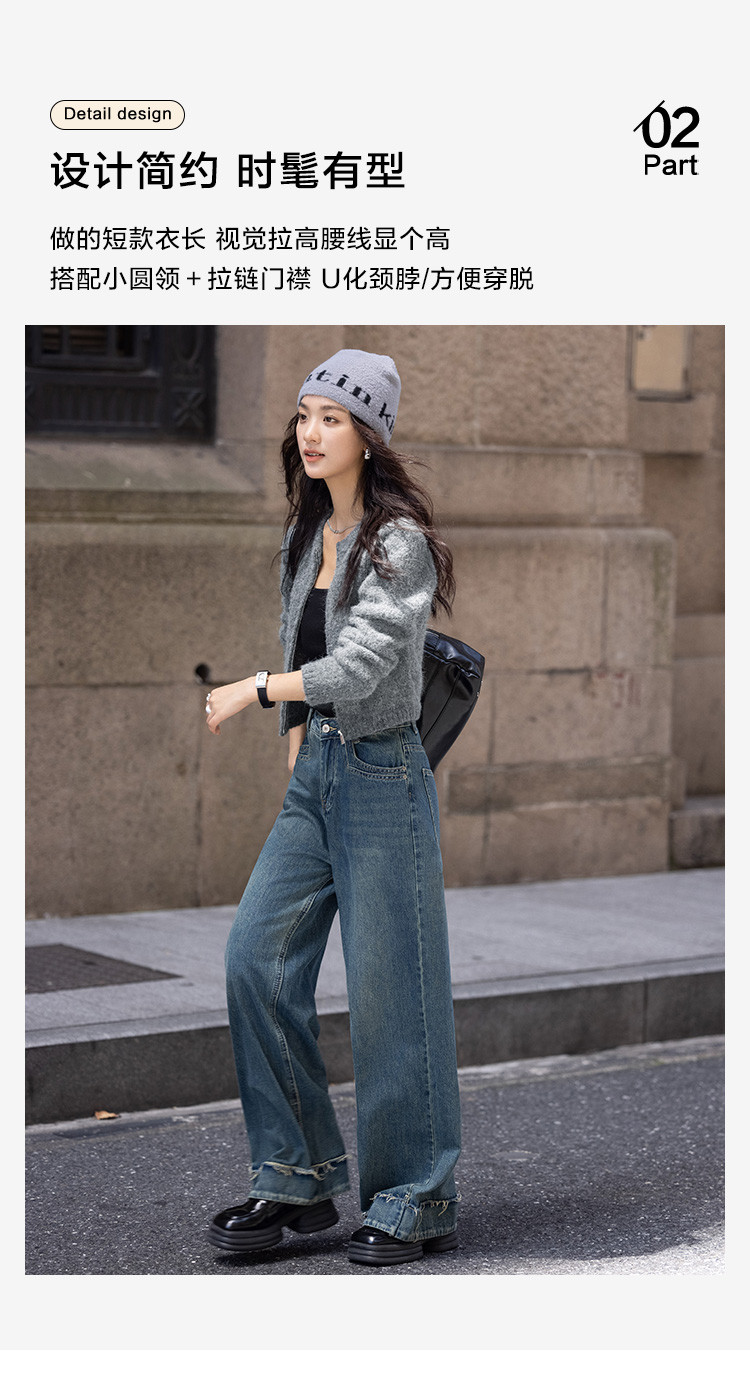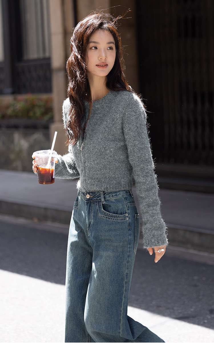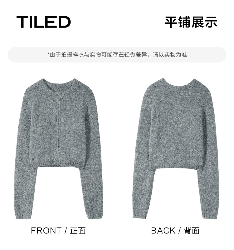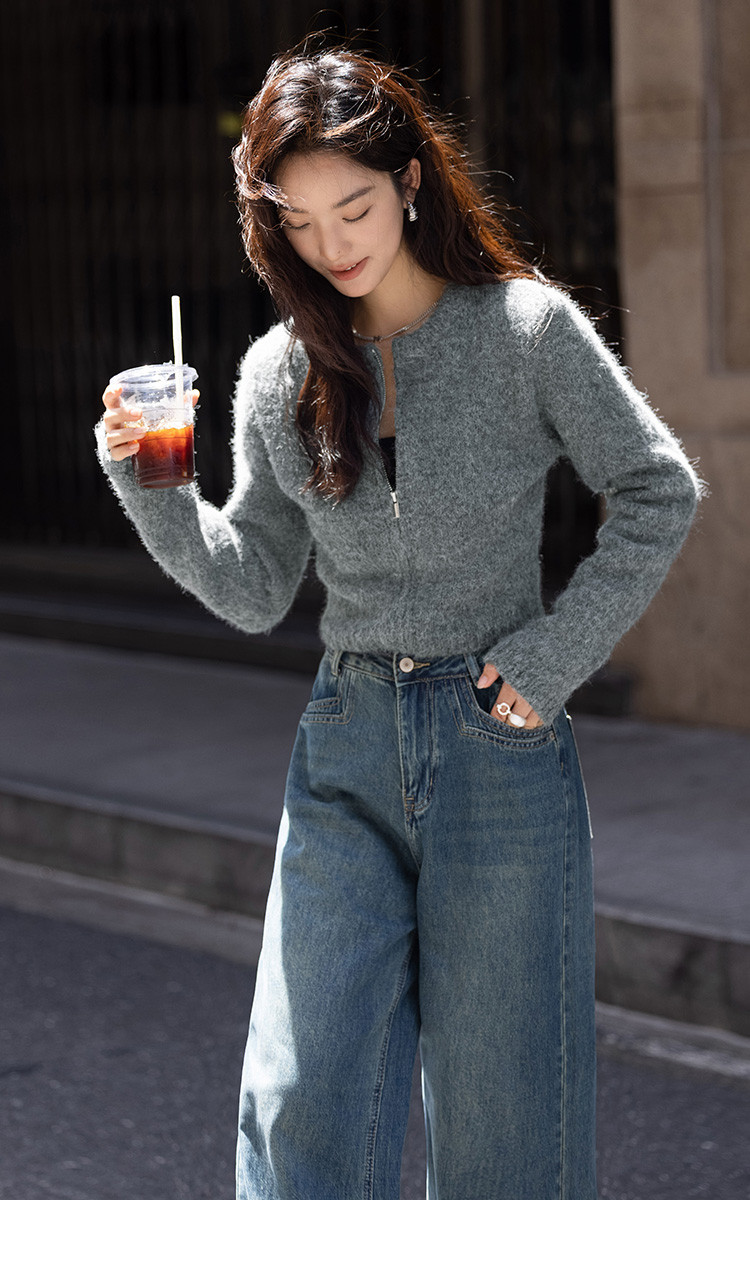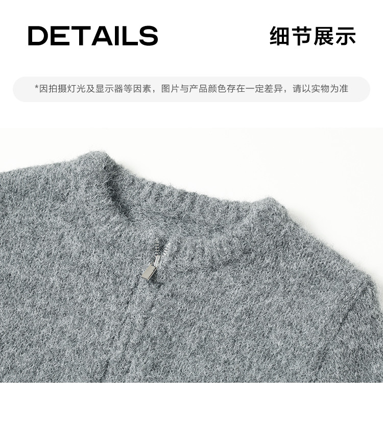 商品名称:【灰色毛绒感针织外套】冬圆领开门襟拉链设计长袖针织衫 936130