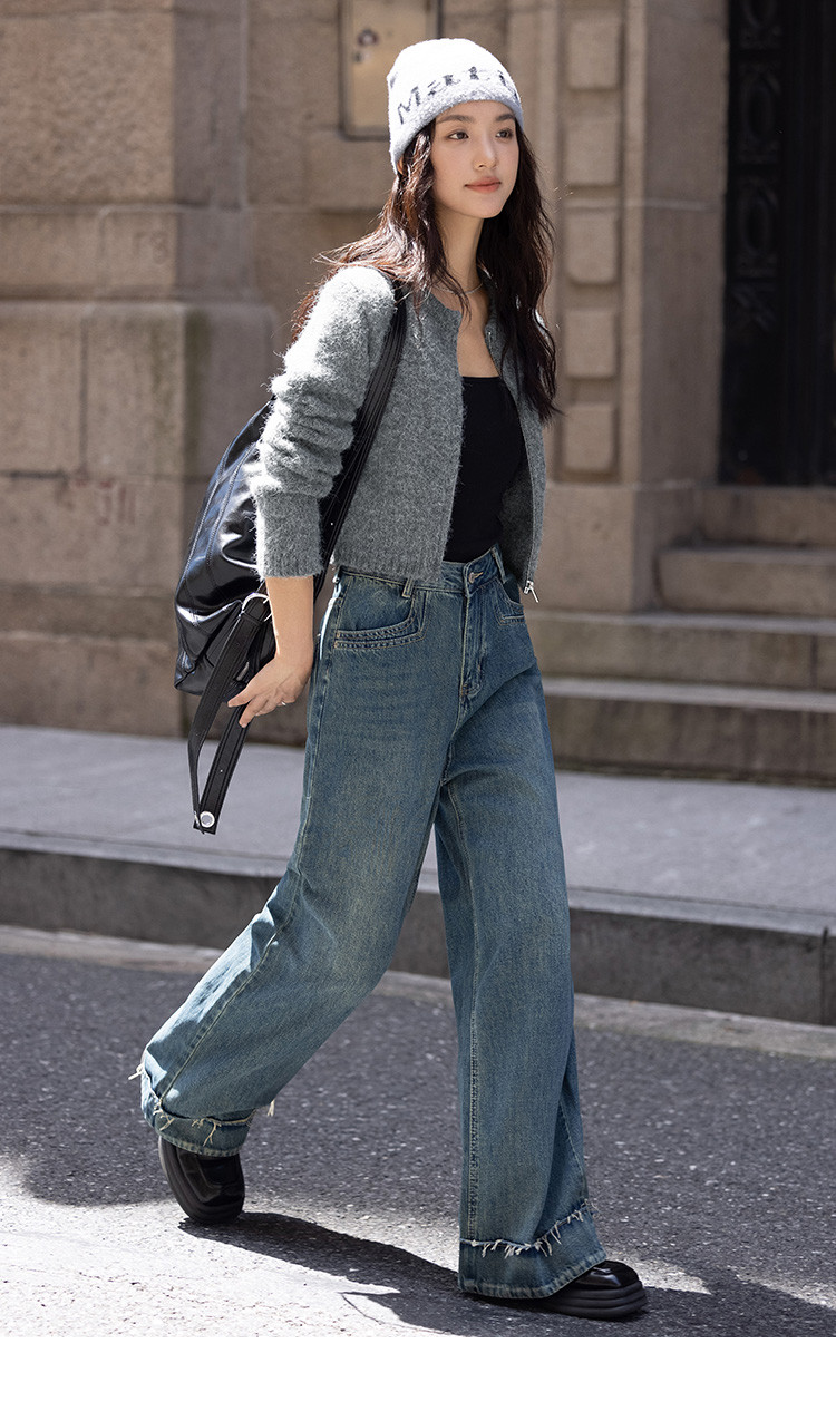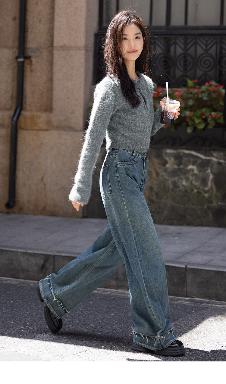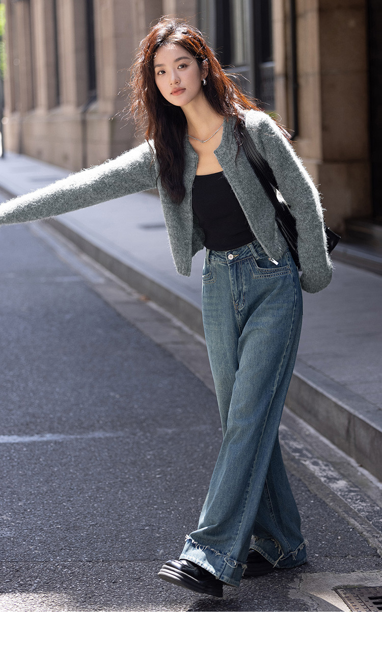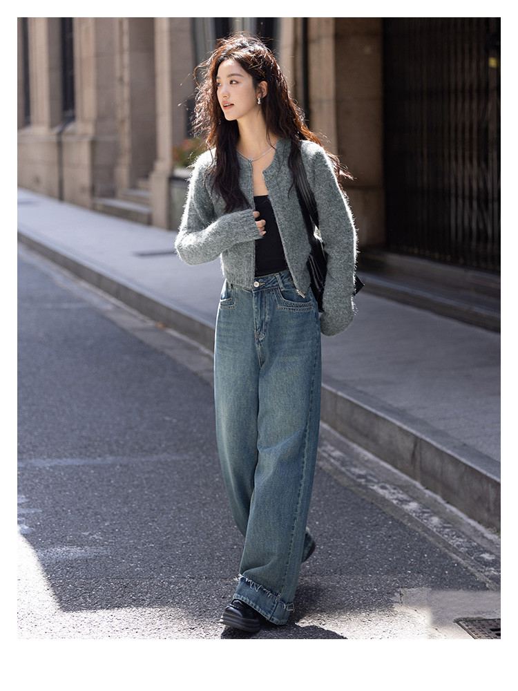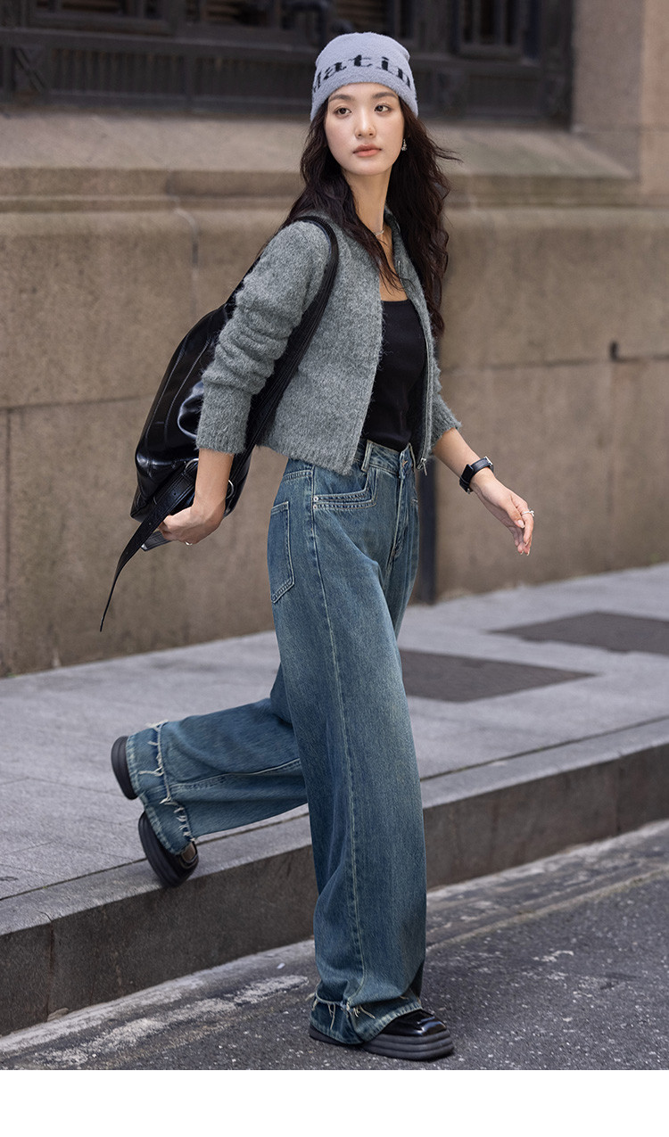 商品名称:【灰色毛绒感针织外套】冬圆领开门襟拉链设计长袖针织衫 936130