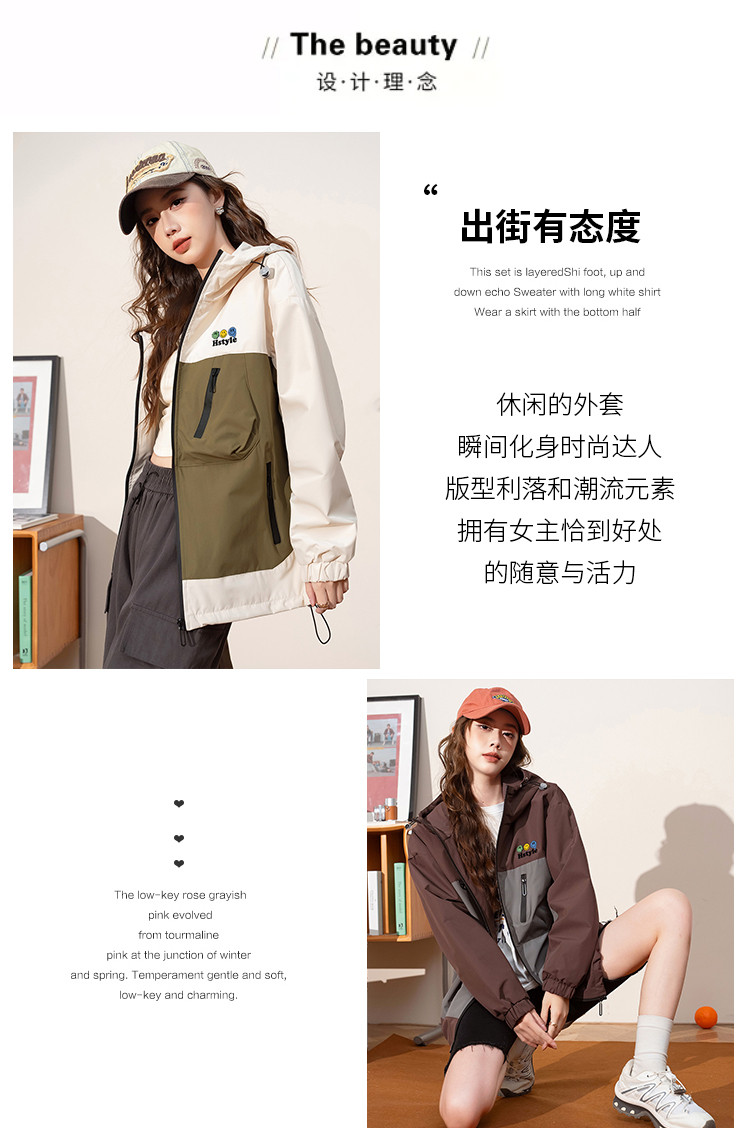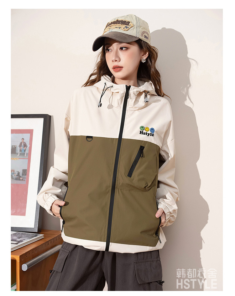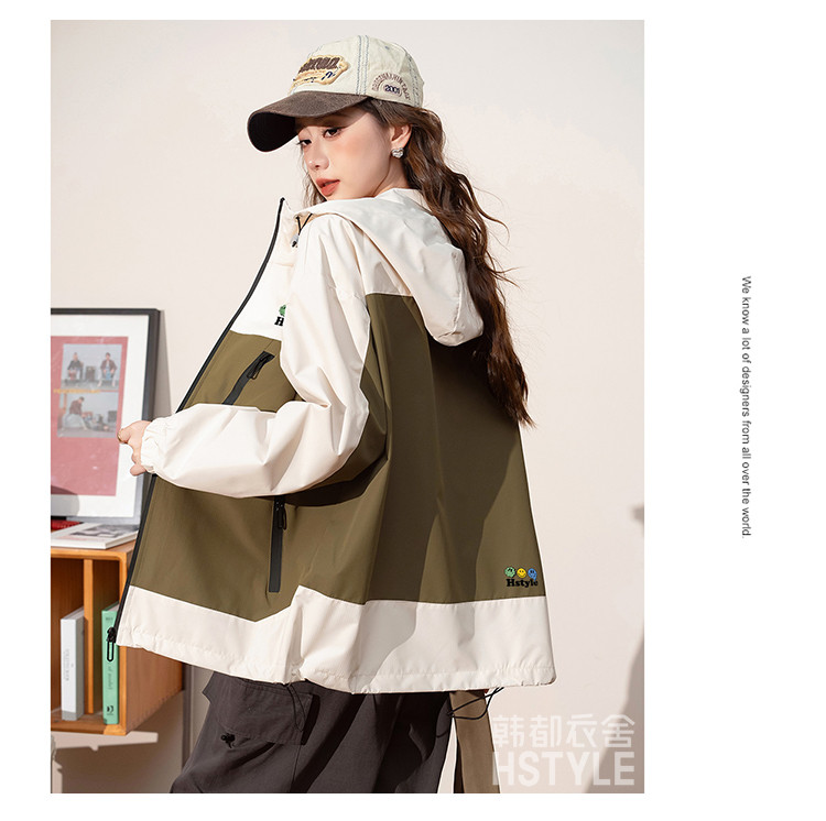 商品名称:春季夹克多口袋设计外套撞色款舒适宽松显瘦长袖外套女式外套 168779