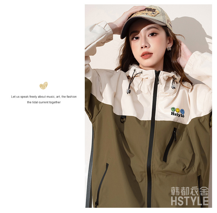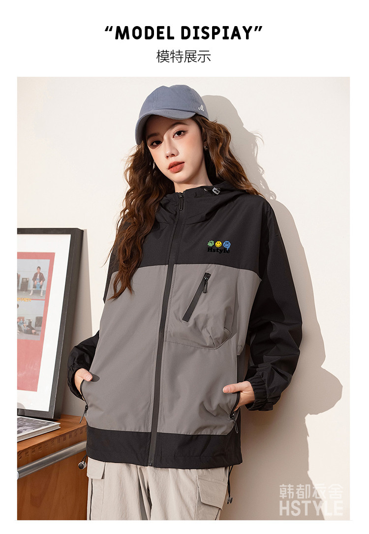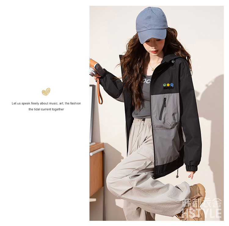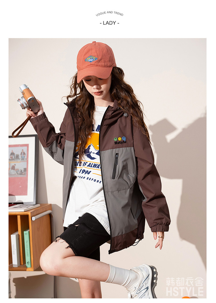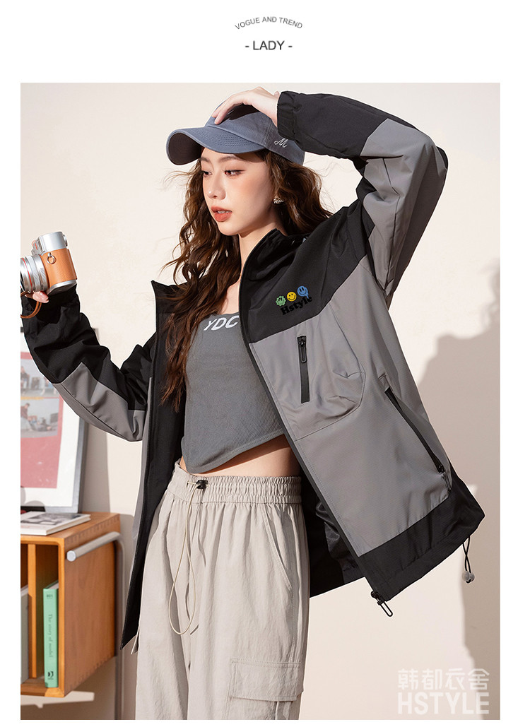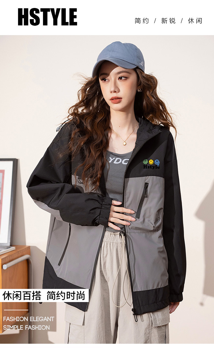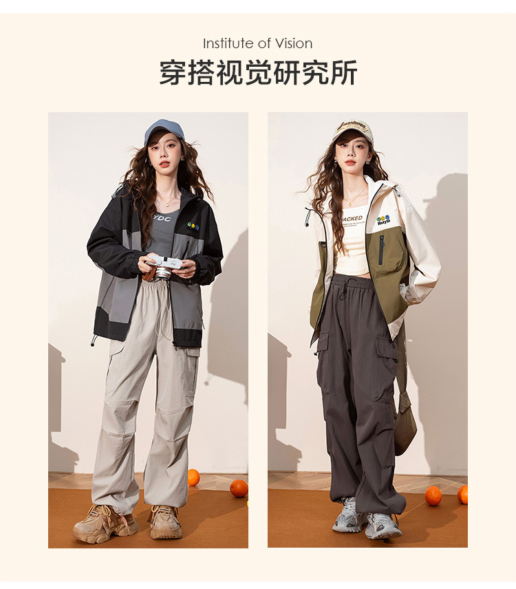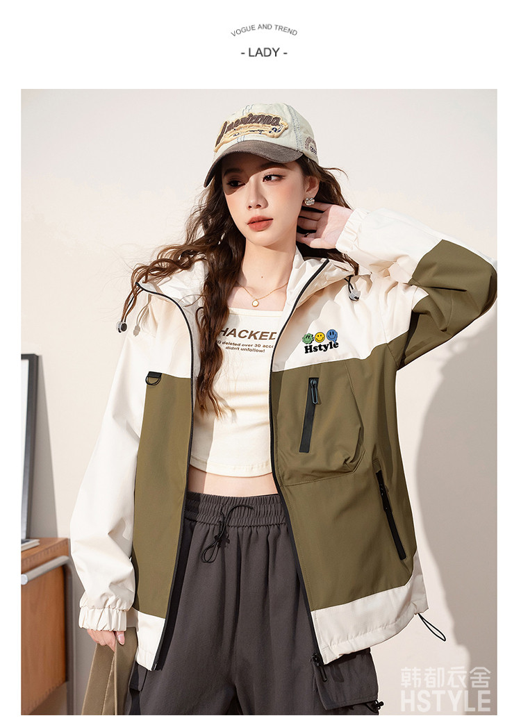 春季夹克多口袋设计外套撞色款舒适宽松显瘦长袖外套女式外套 168779